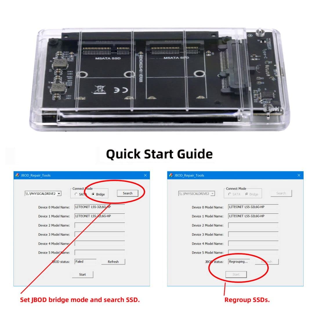 Variante: 2 MSATA to SATA with USB C Hard Disk Box Black
