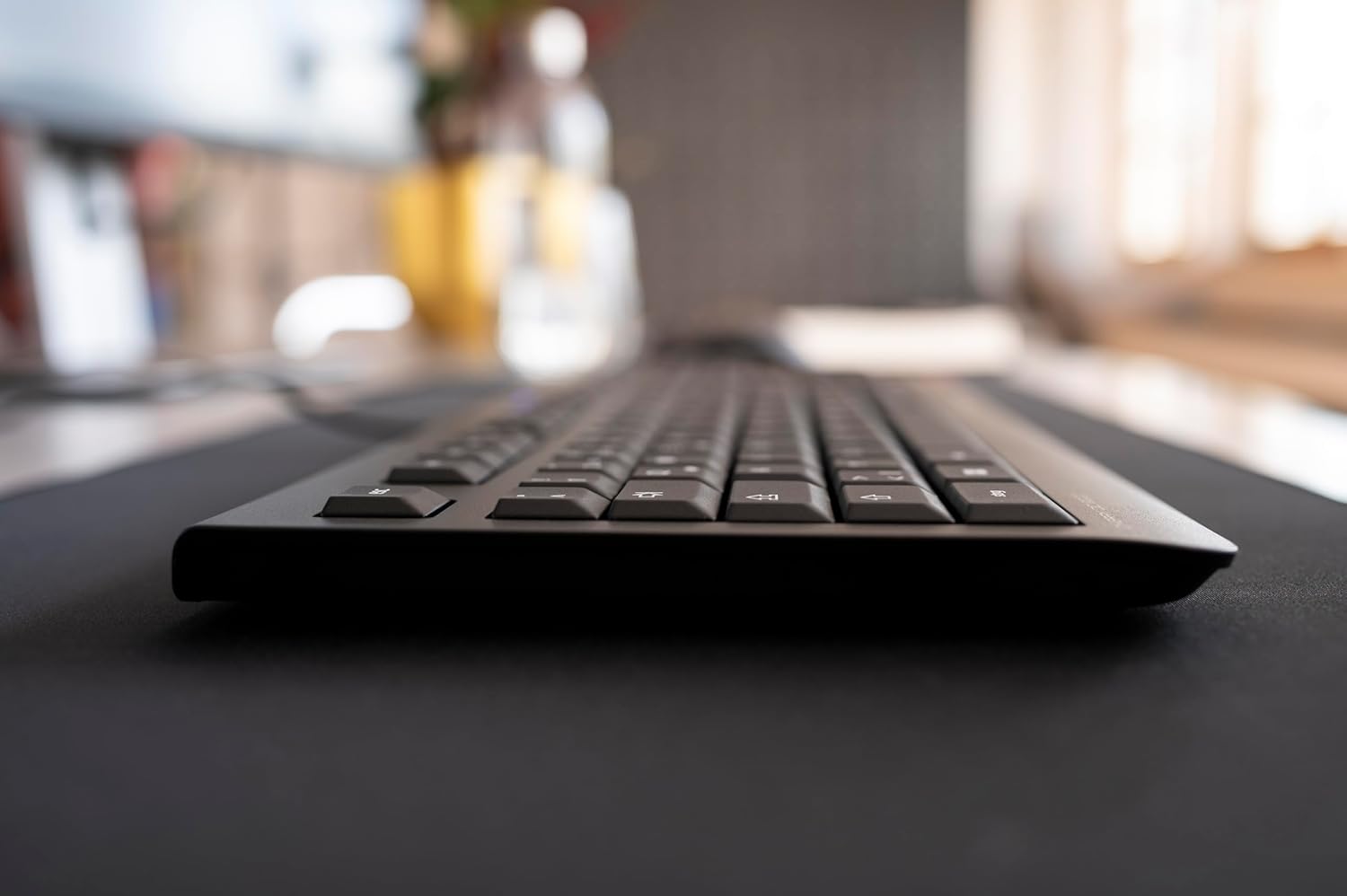 - Flache Tastatur im Fullsize-Layout mit Cursor- und Nummernblock: Absolut belastbar und präzise für effizientes Arbeiten. Bis zu 10 Millionen Tastenbetätigungen ohne Verlust der Eingabequalität