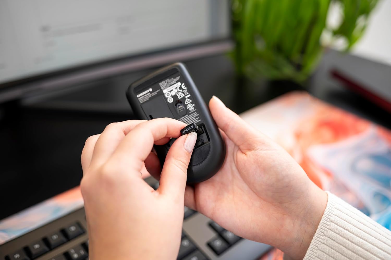 - Symmetrische 3-Tasten-Maus: Optischer Sensor mit 1.200 dpi Auflösung - optimiert für Links- und Rechtshänder. Für sicheren Transport ist der extra kleine Nano-USB-Dongle in der Maus verstaubar