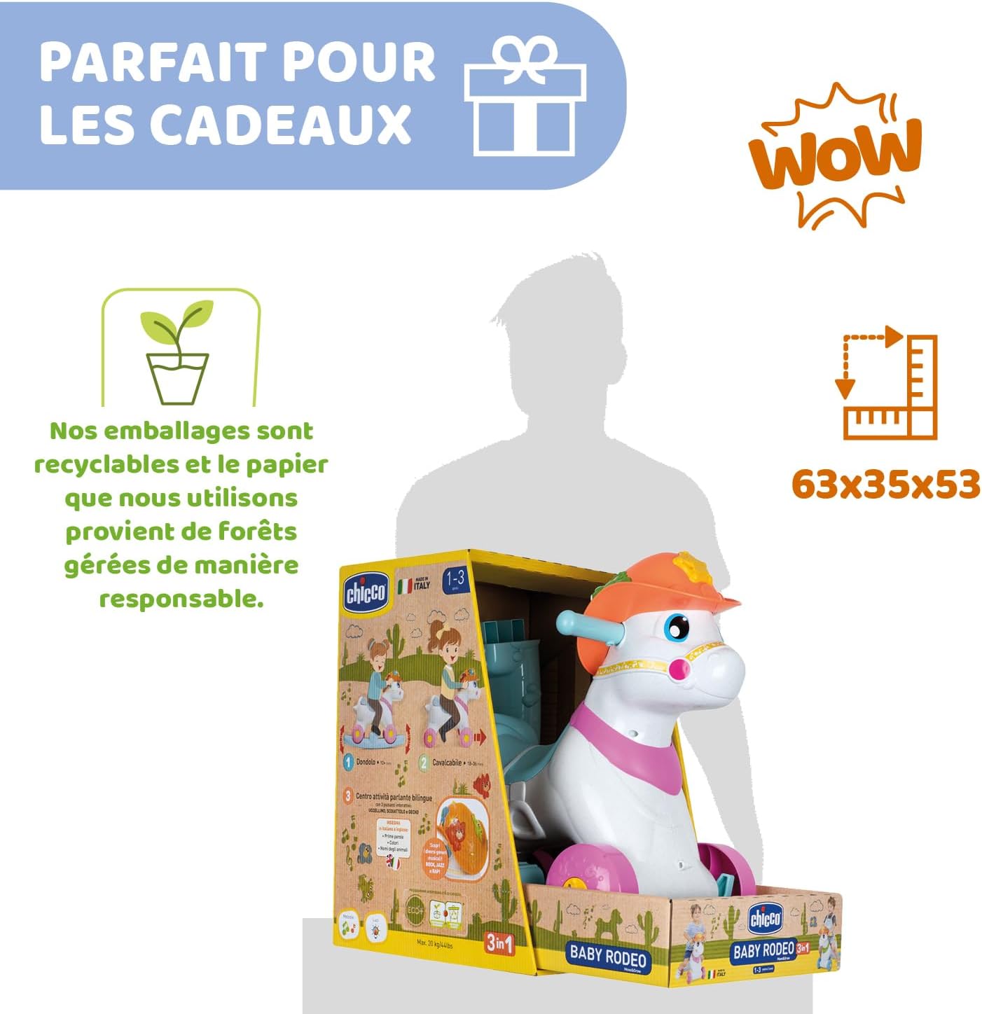 - 2 Modi: 1. Schaukelpferd: für mehr Stabilität 2. Rutscher: Basis entfernen und frei galoppieren