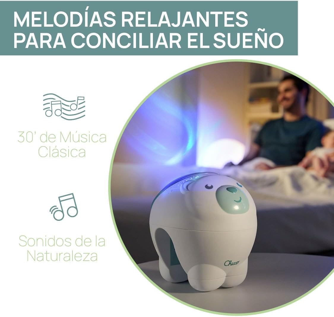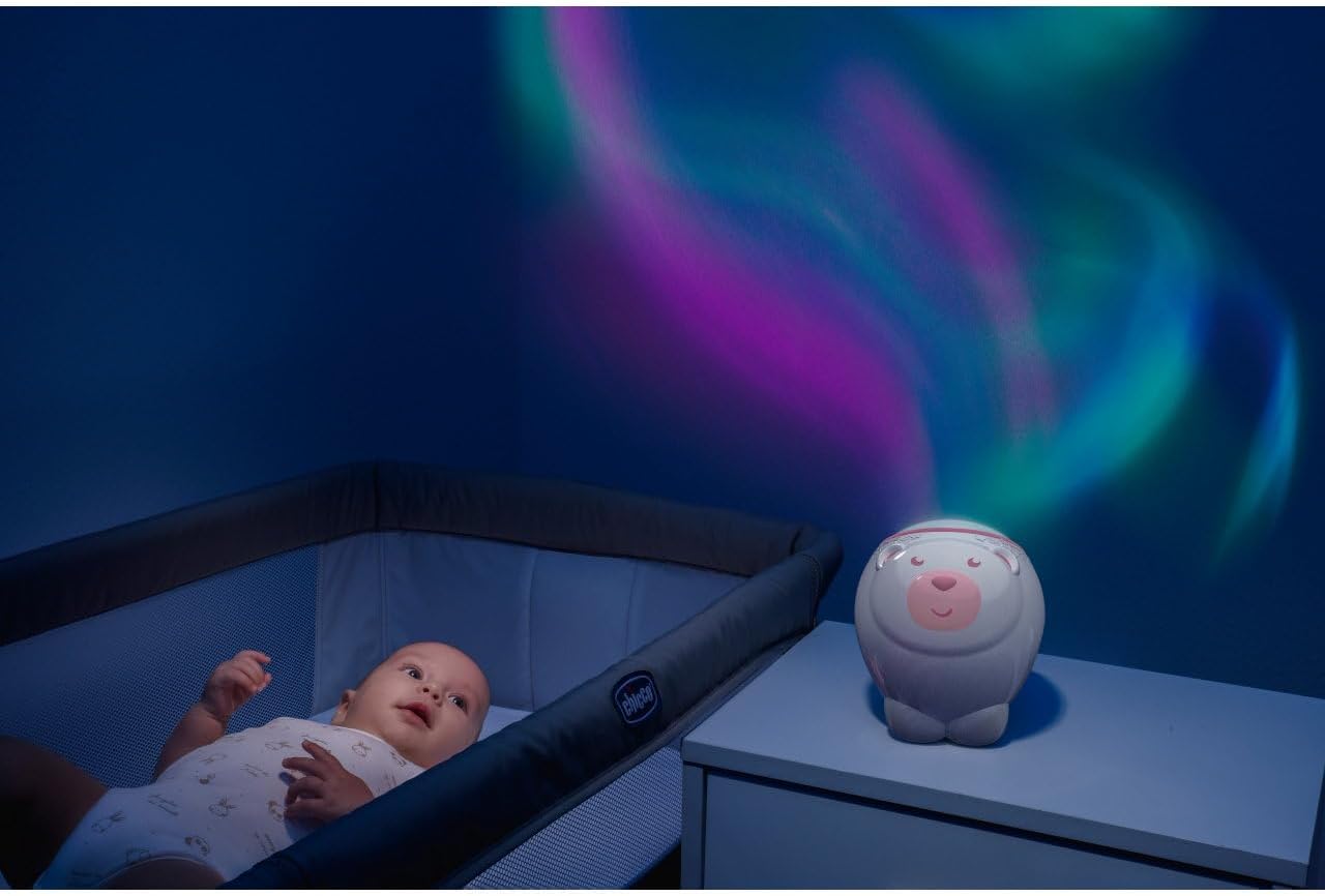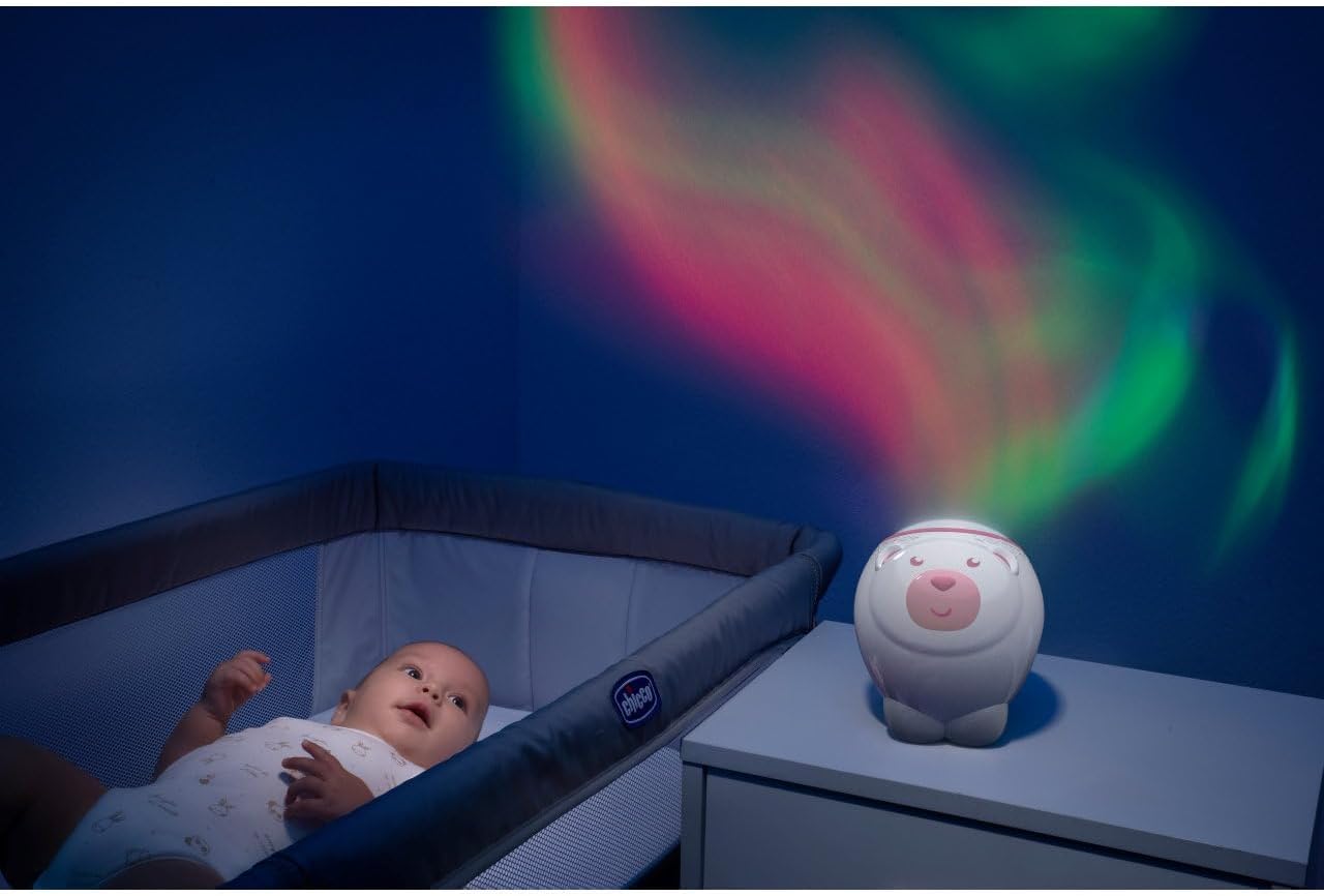 Chicco First Dreams Eisbär Projektor, 2in1 Wiege und Bett Projektor, Kinder Nachtlicht, Aurora Borea