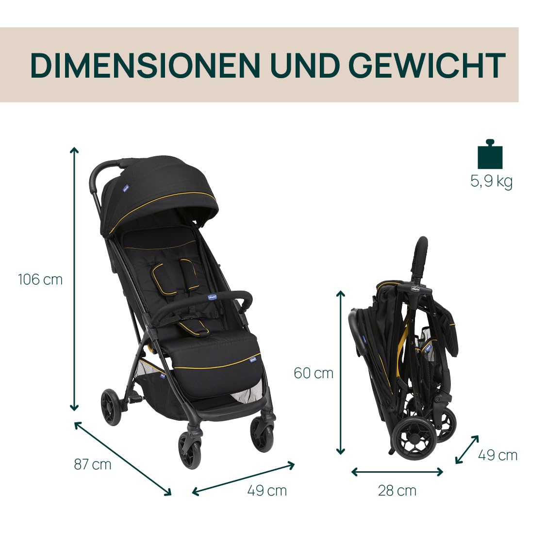 • AUTOMATISCHER UND KOMPAKTER VERSCHLUSS: Mit nur einer schnellen und einfachen Handbewegung schliesst sich der Kinderwagen quasi von selbst. Dank seines kompakten und leichten Designs lässt er sich problemlos transportieren