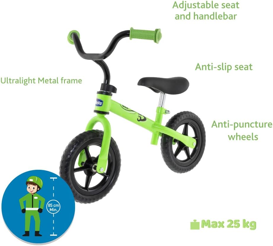 - FAHRRAD OHNE PEDALE: Das Chicco Laufrad hilft dem Kind dabei, das nötige Gleichgewicht zu entwickeln, um sich auch auf einem Fahrrad mit Pedalen sicher fortzubewegen
