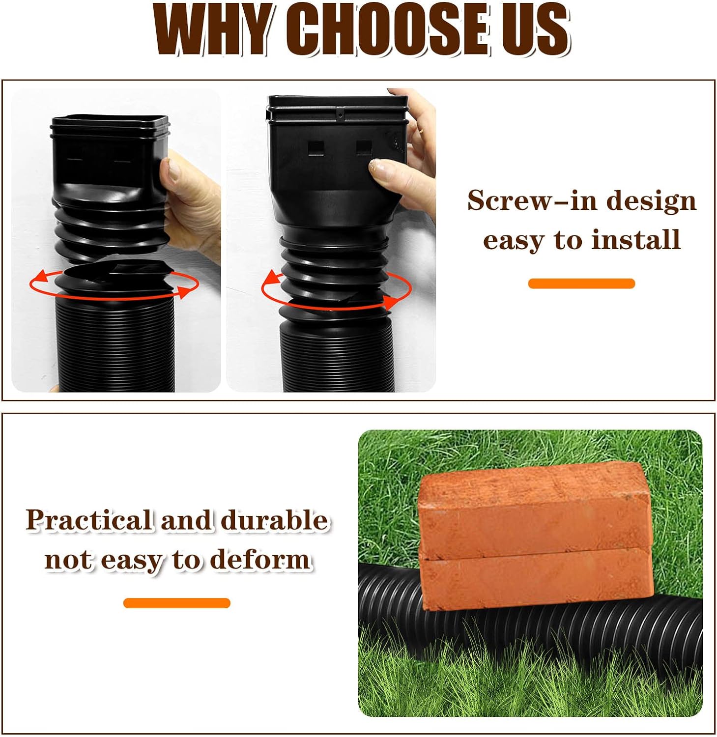 - 【Weit verbreitet】 Einfach zu installieren, kein Schneiden oder Trimmen erforderlich, abnehmbarer Adapter zum schnellen Verbinden der flexiblen Fallrohrverlängerung mit dem vorhandenen Fallrohr. Geniessen Sie das ganze Jahr über den gepflegten Rasen