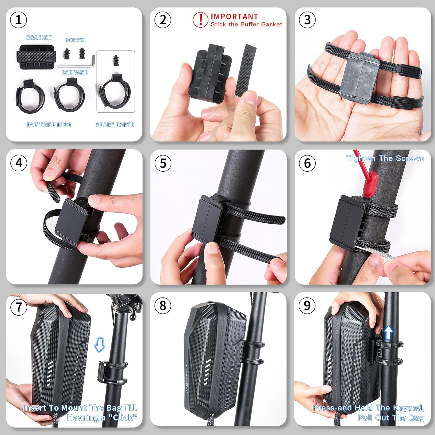 - Tragbare E Scooter Tasche: Das Schnellverschluss-Rack-Design macht diese e roller tasche äusserst praktisch zum Anbringen und Abnehmen. Mit nur einem Klick können Sie die Tasche abnehmen und mitnehmen.