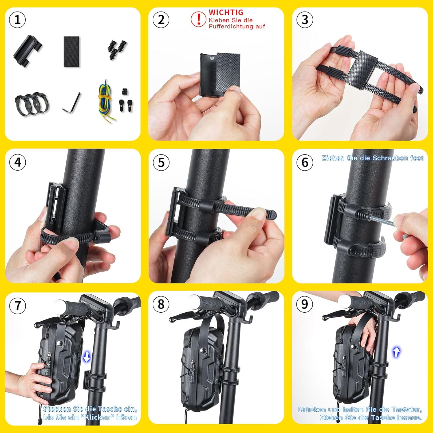 - Schnellverschluss & Tragbare E Scooter Tasche: Das Design mit Schnellverschluss ermöglicht es, diese E Scooter Tasche mit nur einem Schritt schnell zu lösen und gibt gleichzeitig den Lenker Ihres E-Scooters für andere Verwendungen frei. Diese Scooter