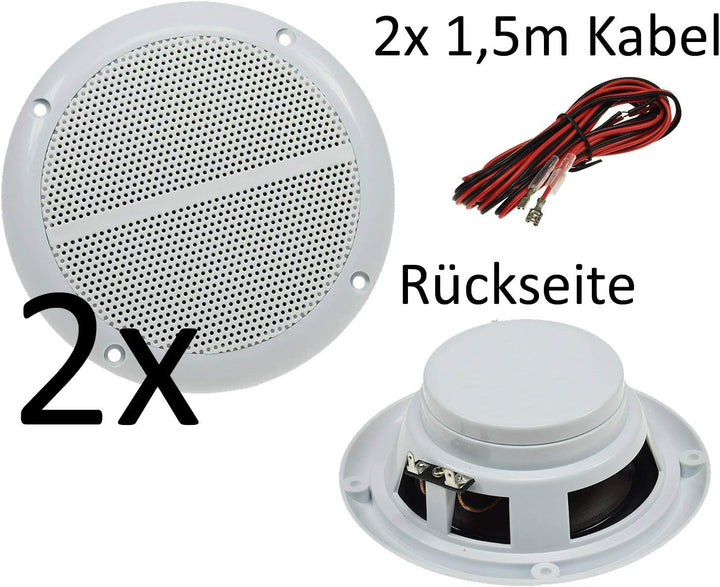 - 2 Stück wasserfeste Aussenlautsprecher für Ø 16,5cm für Boot, Campingmobil, Garten, Terrasse Balkon Imbiss oder Restaurant.