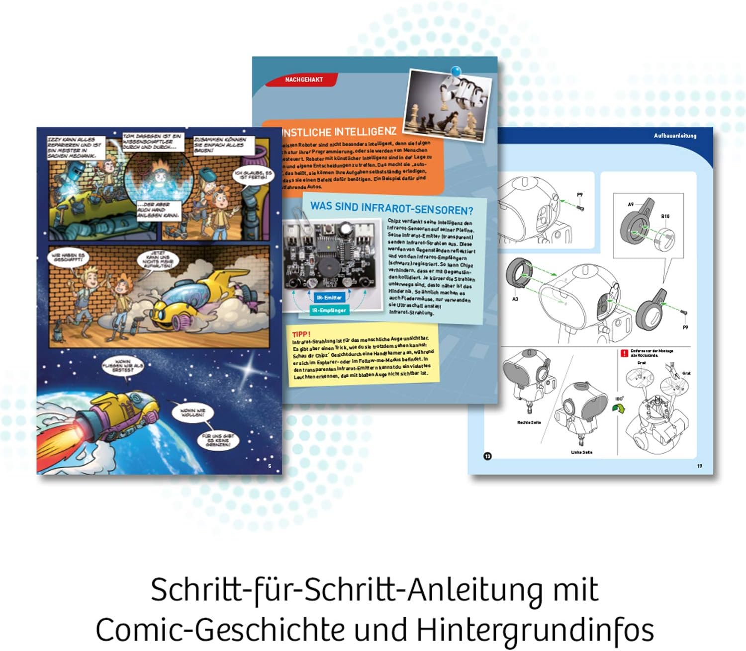 - Eine Comic-Geschichte lässt Chipz lebendig werden und die spannenden Hintergrundinfos vermitteln erste Einblicke in die Welt der Robotik und Physik.