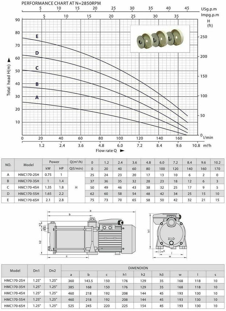 - Förderhöhe: 78 Meter - Max. Druck: 7,8 bar - Max. Fördermenge: 10200 L/h - 170 L/min. Die Pumpe muss mit einer trägen Sicherung 16 A abgesichert werden !!!