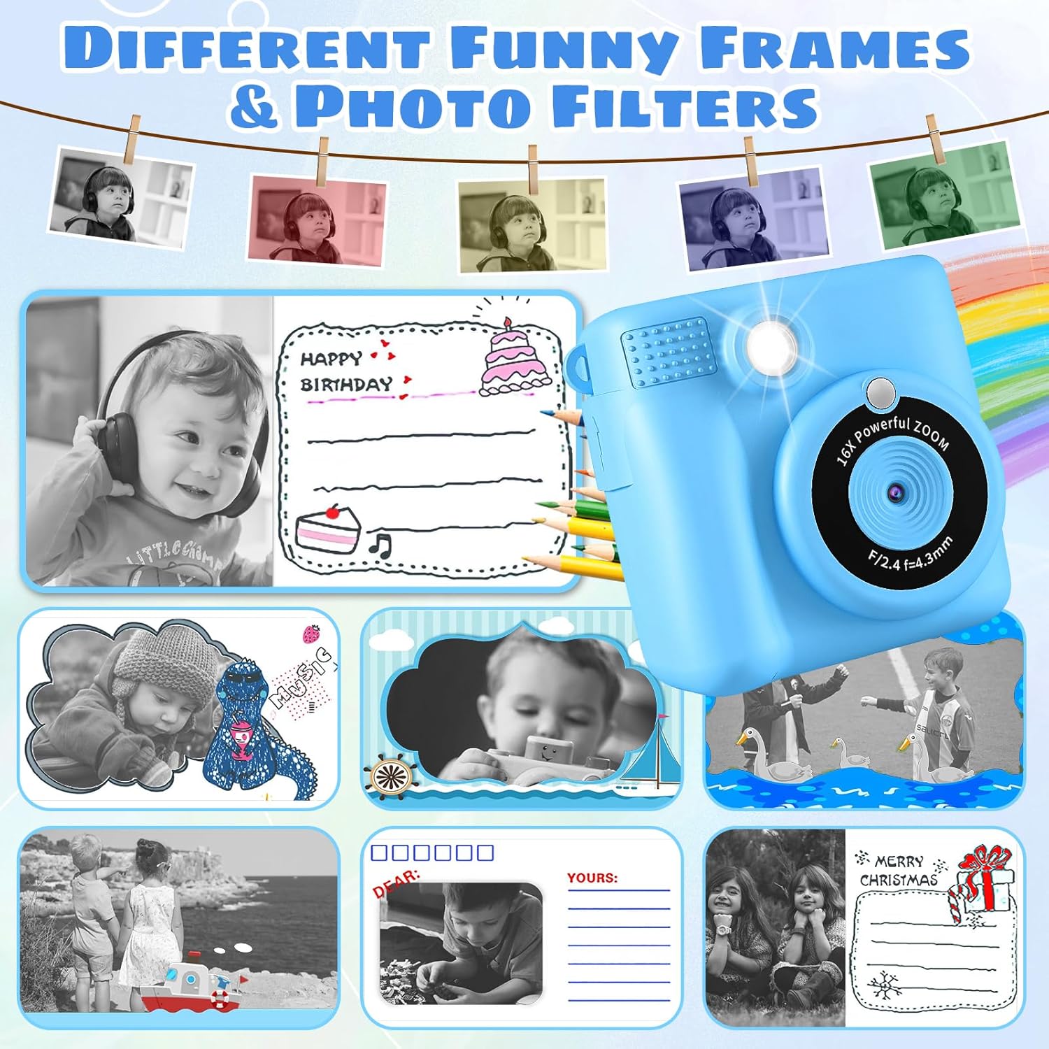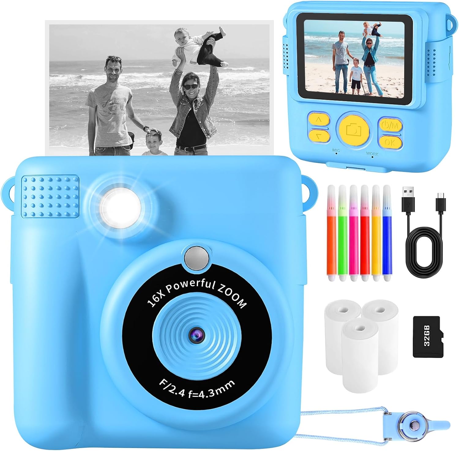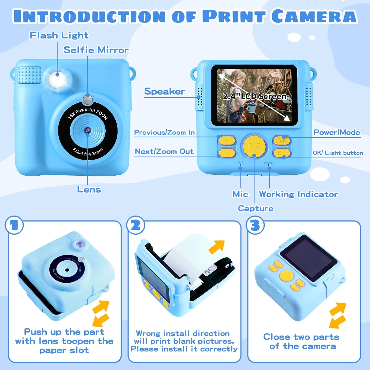 - 【Perfektes Spielzeug Geschenk für Mädchen & Jungen】Diese Sofortbildkamera für Kinder ist mit einem Taschenformat 355g Gewicht .Und ausgestattet mit Lanyard, dass Kinder es überall tragen können. Jedes gedruckte Foto enthält Erinnerungen an die