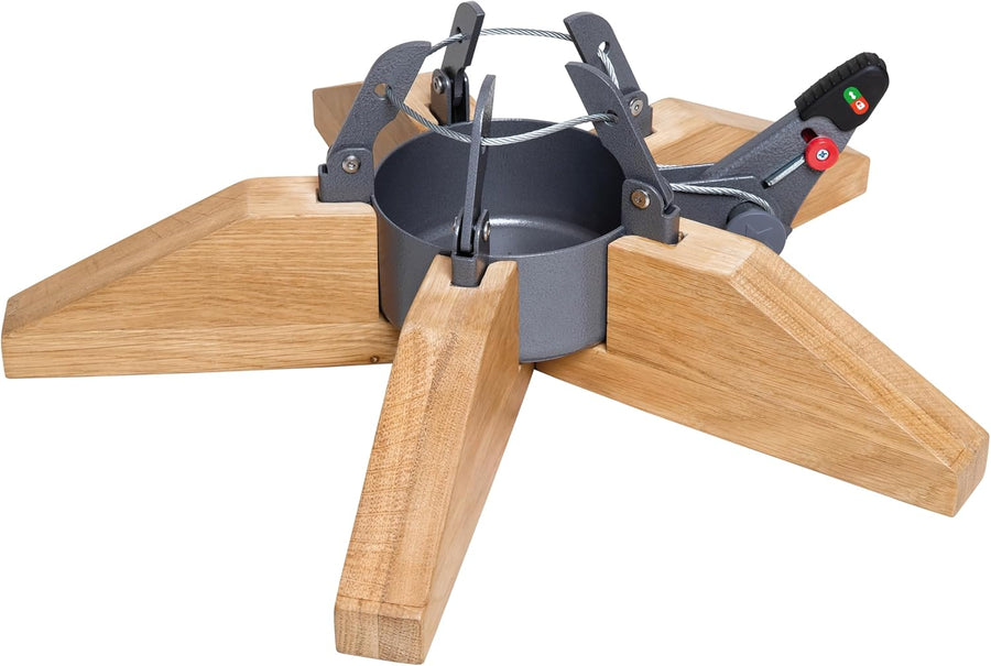 PRODUKTBESCHREIBUNGEN Design Christbaumständer Holz, mit bewährter Einseil- und Fusshebeltechnik, Holz und Verpackung FSC zertifiziert