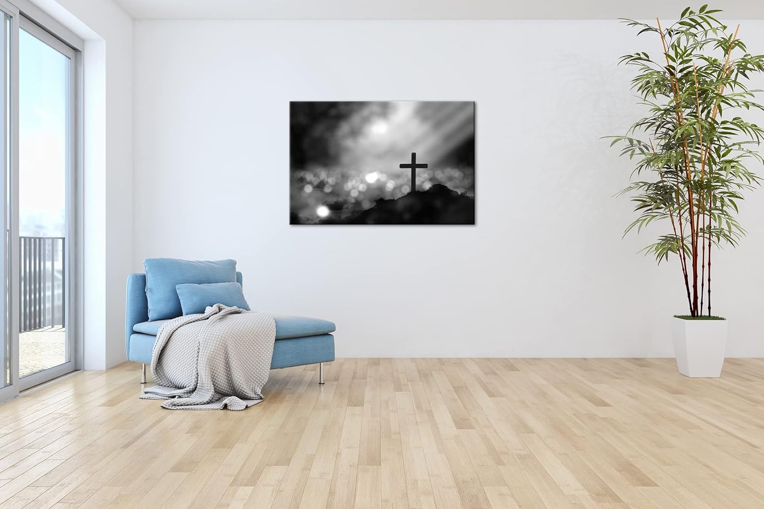 deyoli Christliches Kreuz Effekt: Schwarz&Weiss Format: 80x60 als Leinwandbild, Motiv fertig gerahmt