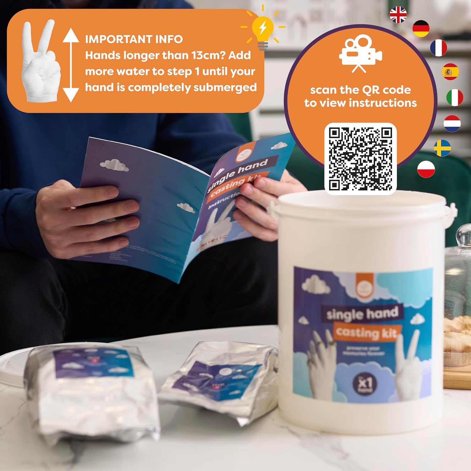 - 🖐️ 📏 Perfekt für Hände jeder Grösse: Dieses Kit ist für das Giessen einer einzelnen Hand konzipiert und funktioniert hervorragend für sowohl kleine als auch grosse Hände. Wichtiger Hinweis: Wenn Ihre Hand länger als 13 cm (vom Handgelenk