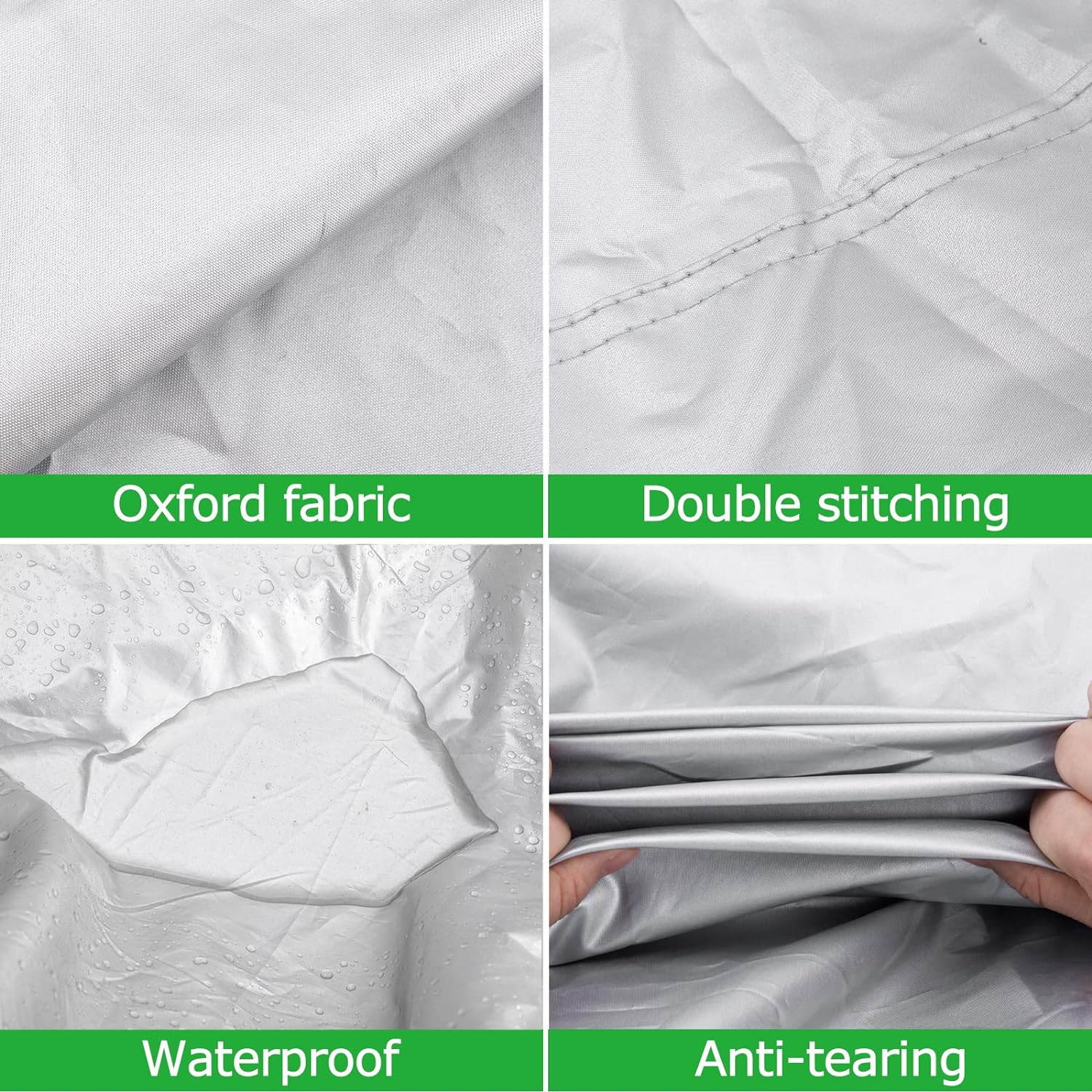 - Überlegenes Material: Hergestellt aus Oxford-Gewebe, wasserdicht*, schmutzabweisend, sonnenfest, schützt Ihr Fahrzeug gut vor Sonne, Schnee, Frost, Staub, Kratzern, Schmutz usw. Die Aluminiumbeschichtung reflektiert effektiv UV-Strahlen