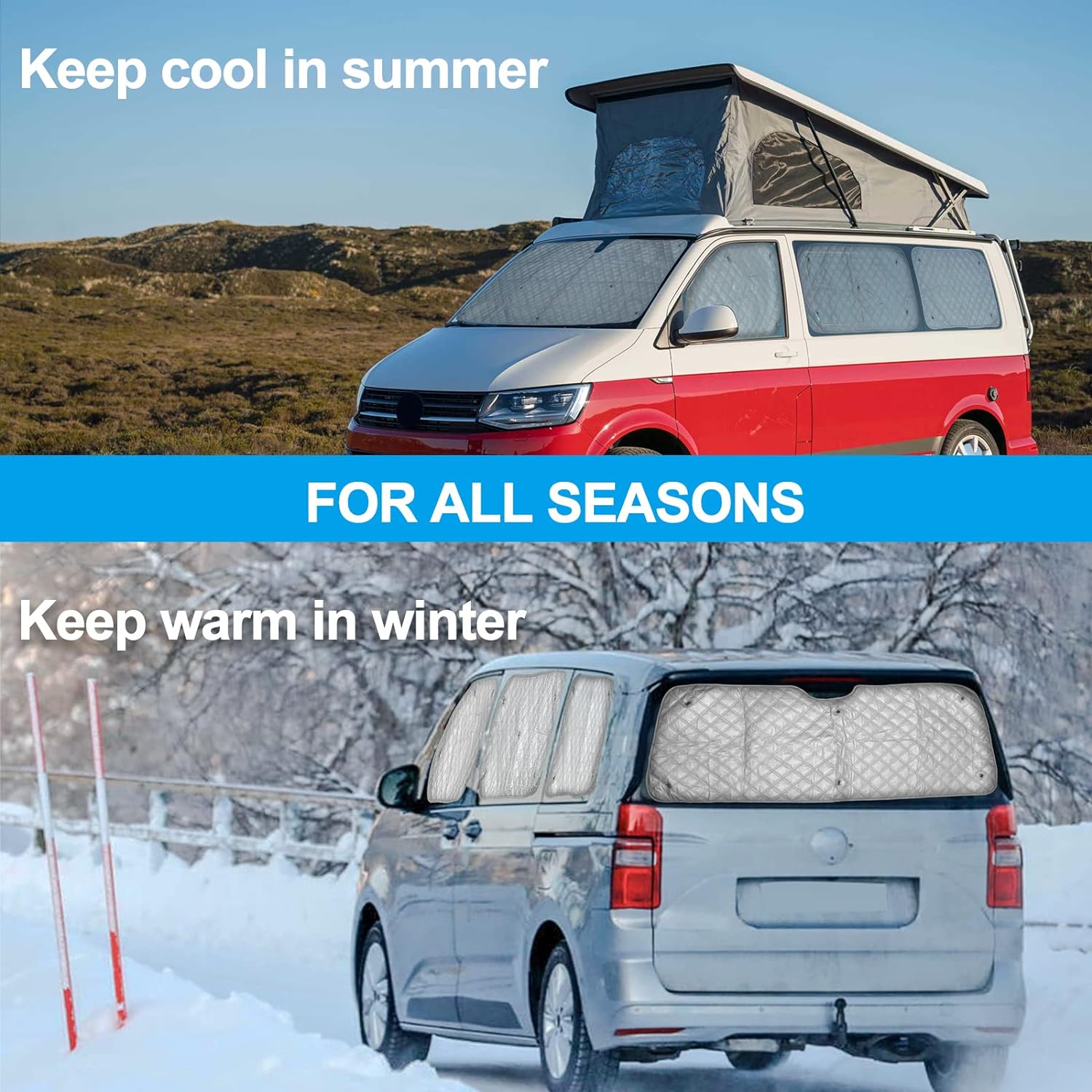 - Breites Einsatzspektrum: Universell passend für T5 T6 Campervans und Wohnmobil. Ideale Lösung für Sonnenschutzabdeckungen im Auto. Faltbar und tragbar zur Aufbewahrung, wenn sie nicht mit der Aufbewahrungstasche verwendet wird
