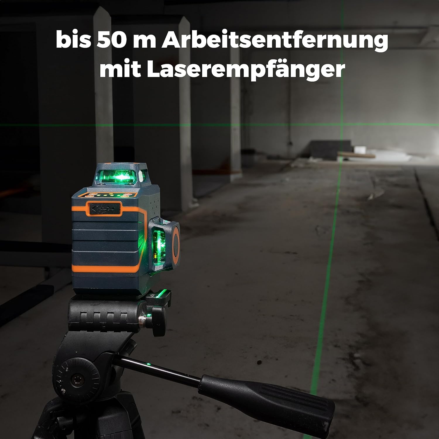 - 【3 X 360° NIVELLIERGERÄT MIT FERNBEDIENUNG】: dank der horizontalen 360° -Linie und 2 vertikaler Linien ermöglicht ein paralleles Ausrichten auf Böden, an Decken und an Wänden. Die drei Laserlinien verfügen über entsprechende Tasten am Gerät