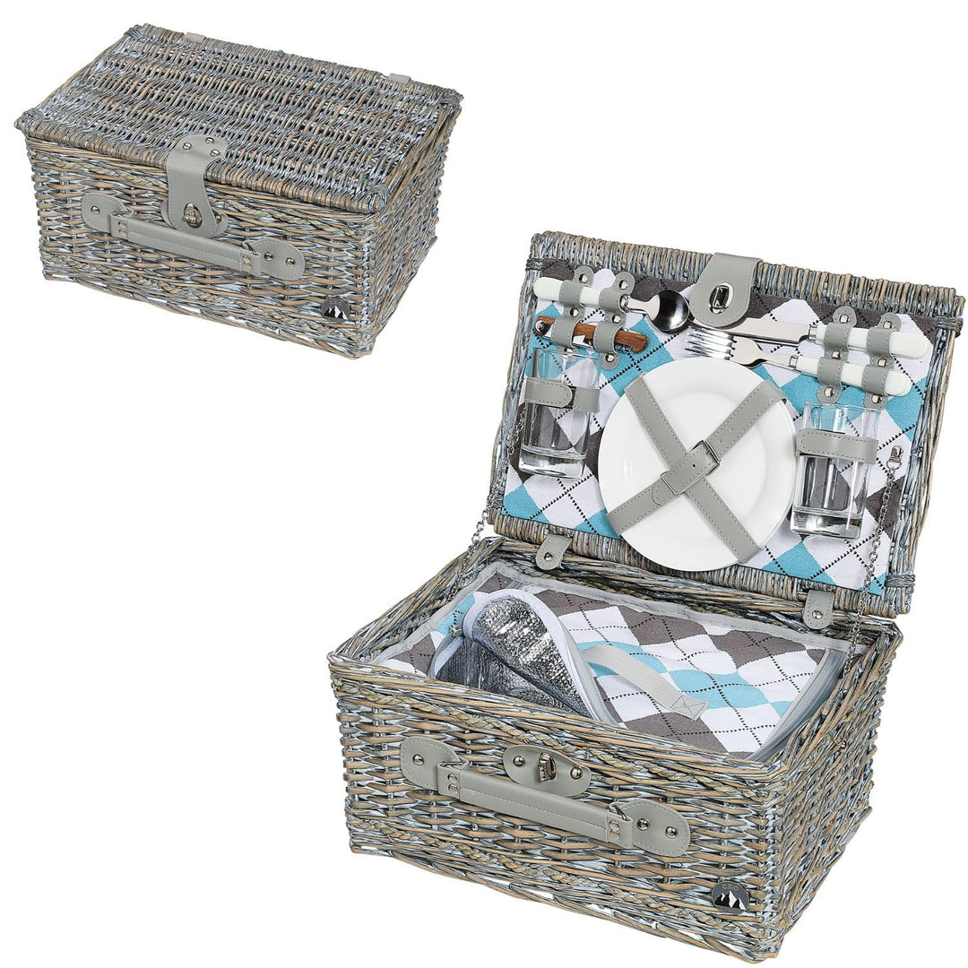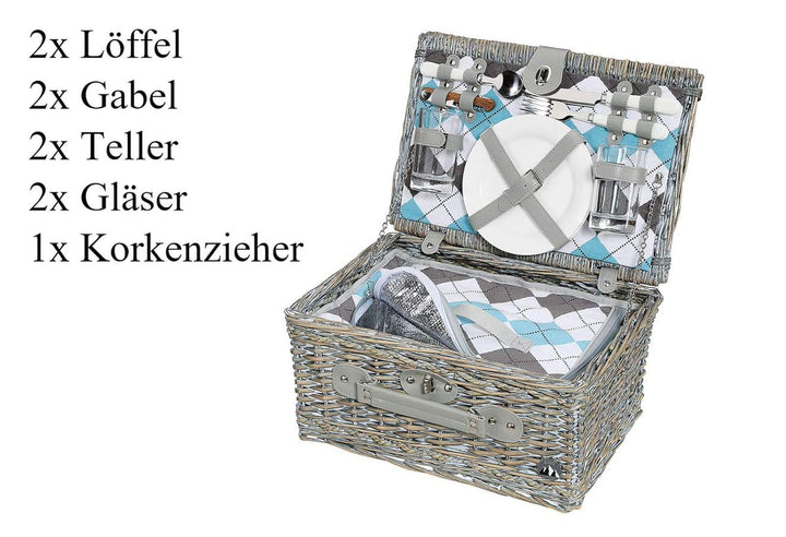 - inkl. Je 2 Messer, Gabeln, Löffel, Gläser, weisse Keramik-Teller und 1 Kellner-Korkenzieher