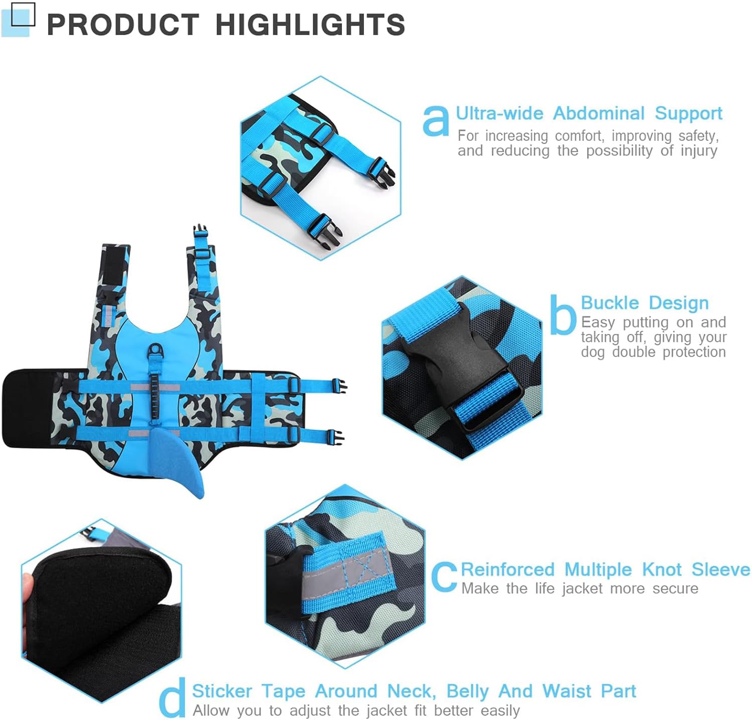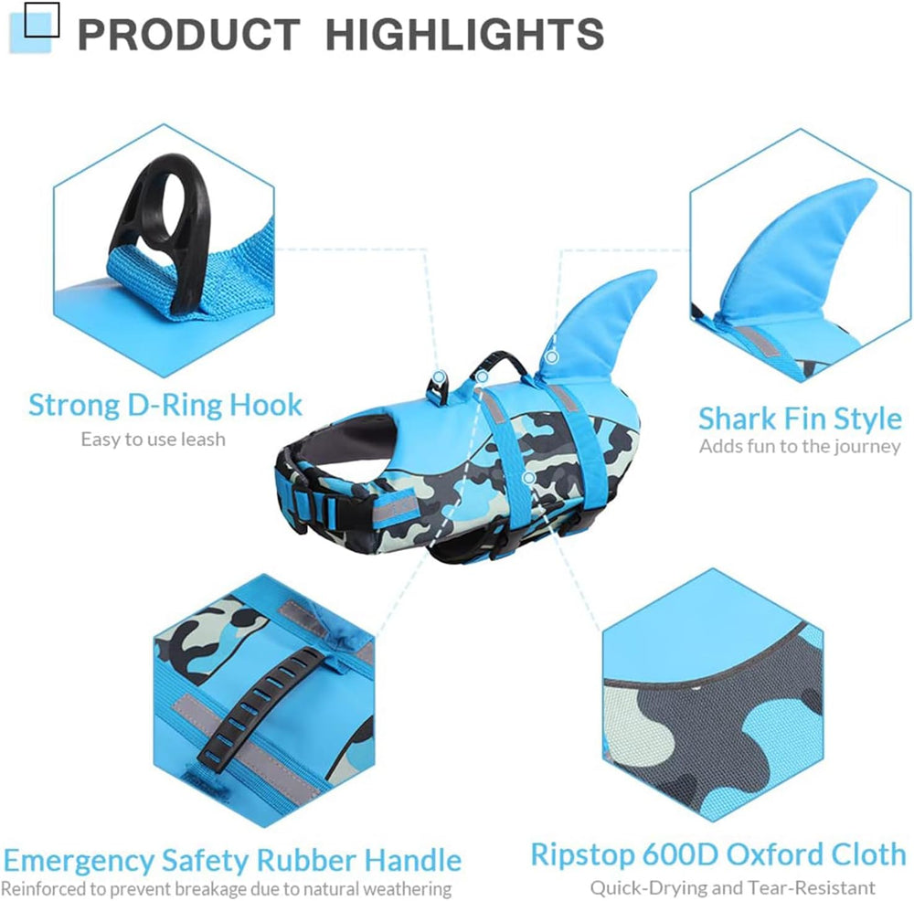 - Modische Schwimmweste: Diese stilvolle hunde schwimmweste verfügt über Haifischmuster und Tarnung, ist einzigartiger und wird nicht aus der Mode kommen. und dann erleichtert die leuchtende Farbe das Auffinden Ihres Hundes und macht ihn auch für Boote
