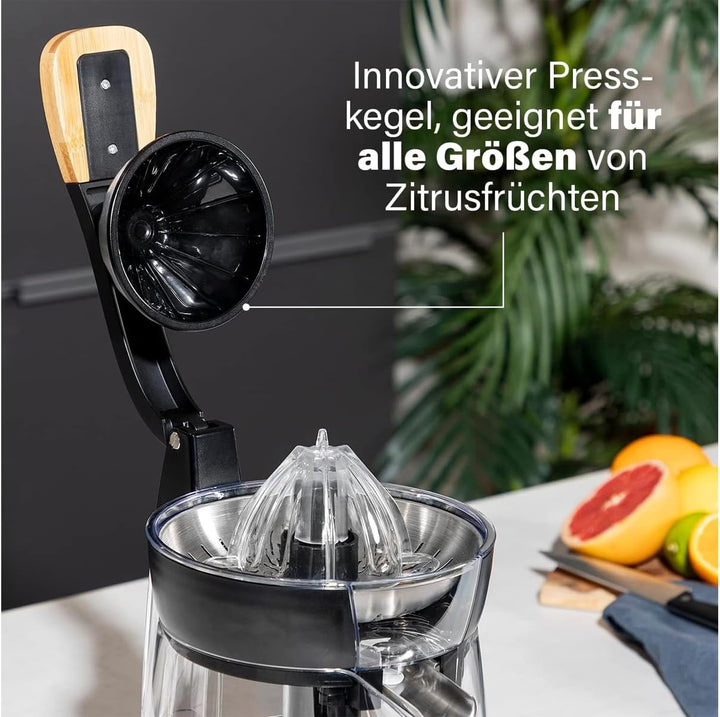- Mit dem starken Presshebel können Sie jede Art von Zitrusfrüchten mit wenig Kraftaufwand auspressen