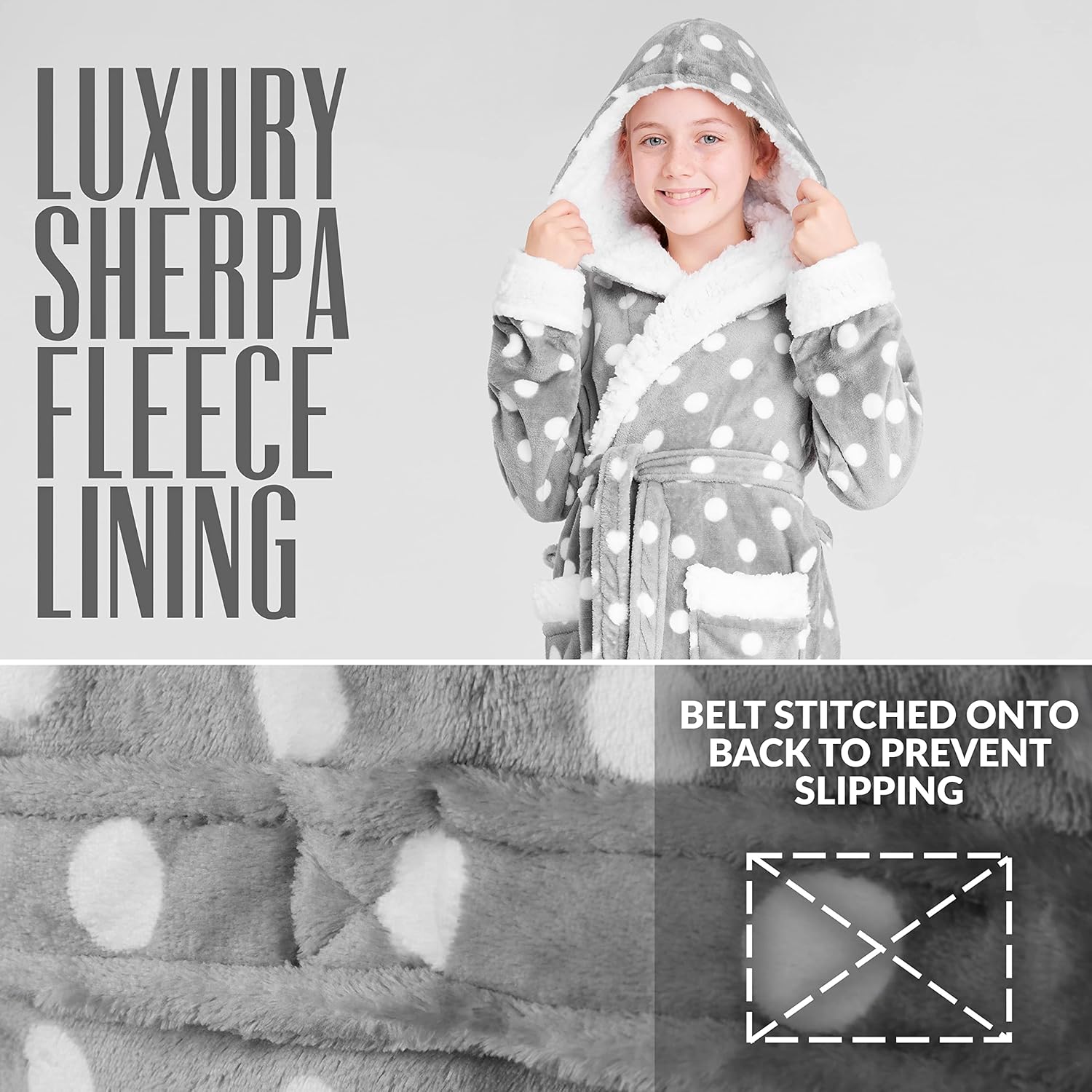 CityComfort Bademantel Kinder Mädchen, Fleece Morgenmantel Kinder Dressing Gown mit Punkten, Grau
