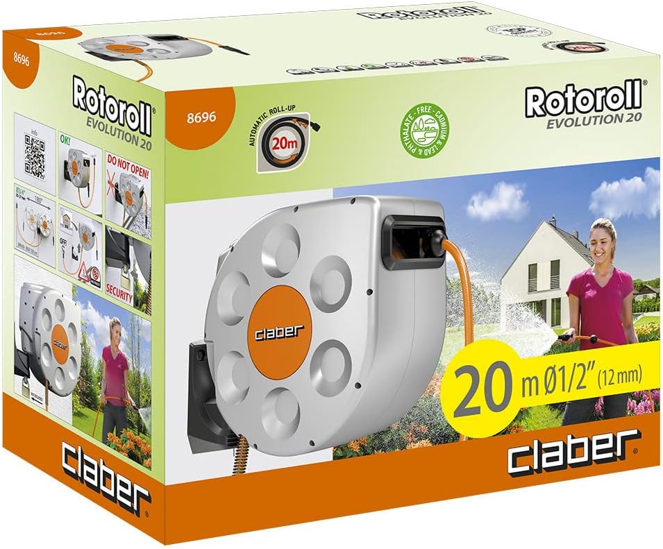 - Claber Rollò Evolution, Schlauch-Aufroller 20 mt grigio, arancione nero