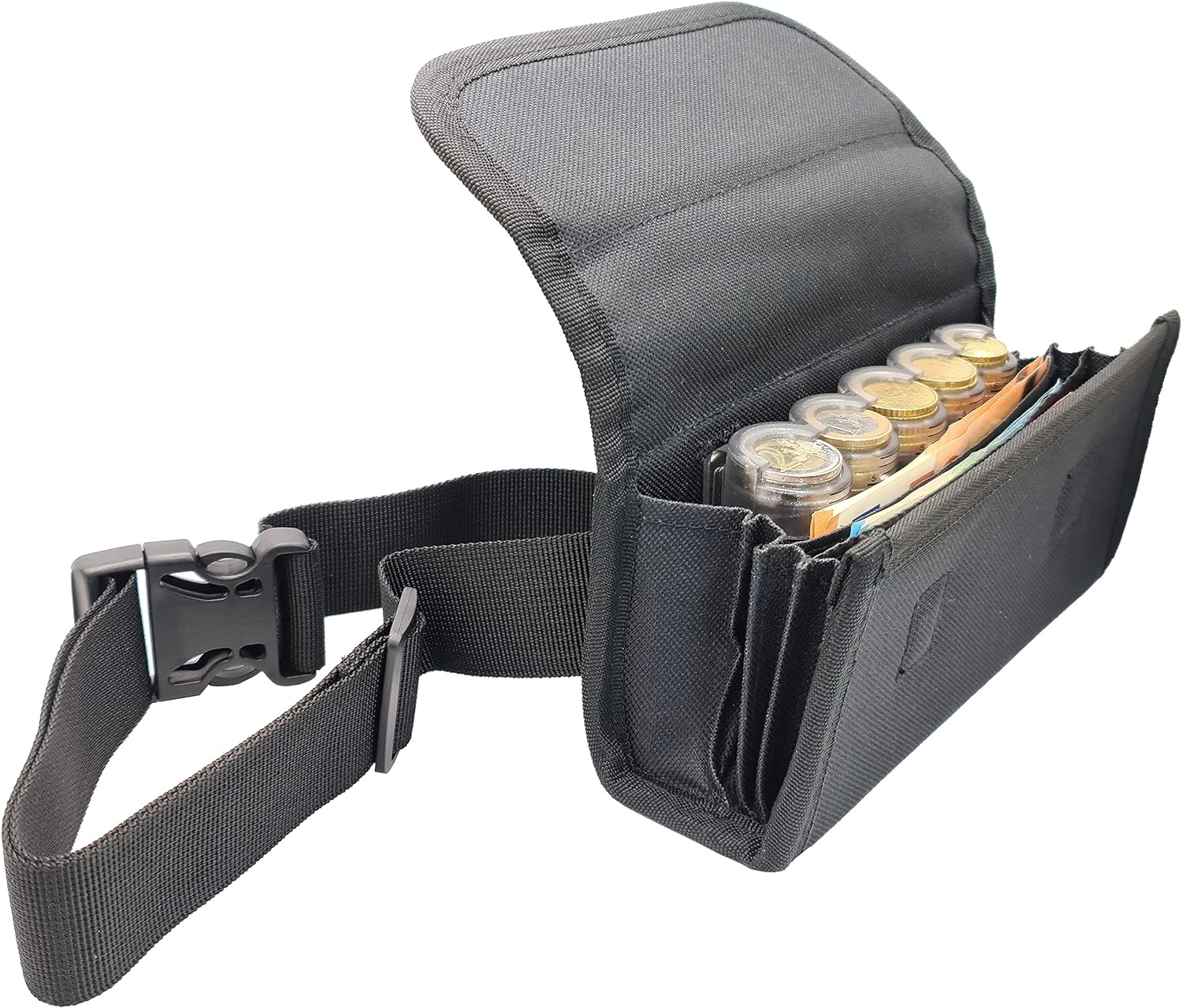 - 1/ Mit diese Polyester Canvas hüfttasche und seinem super praktischen Durchsichtige und Graduierte 5 Euro Münzspender werden sie 5x schneller geld tauschen als wie mit irgendeinem portemonnaie.