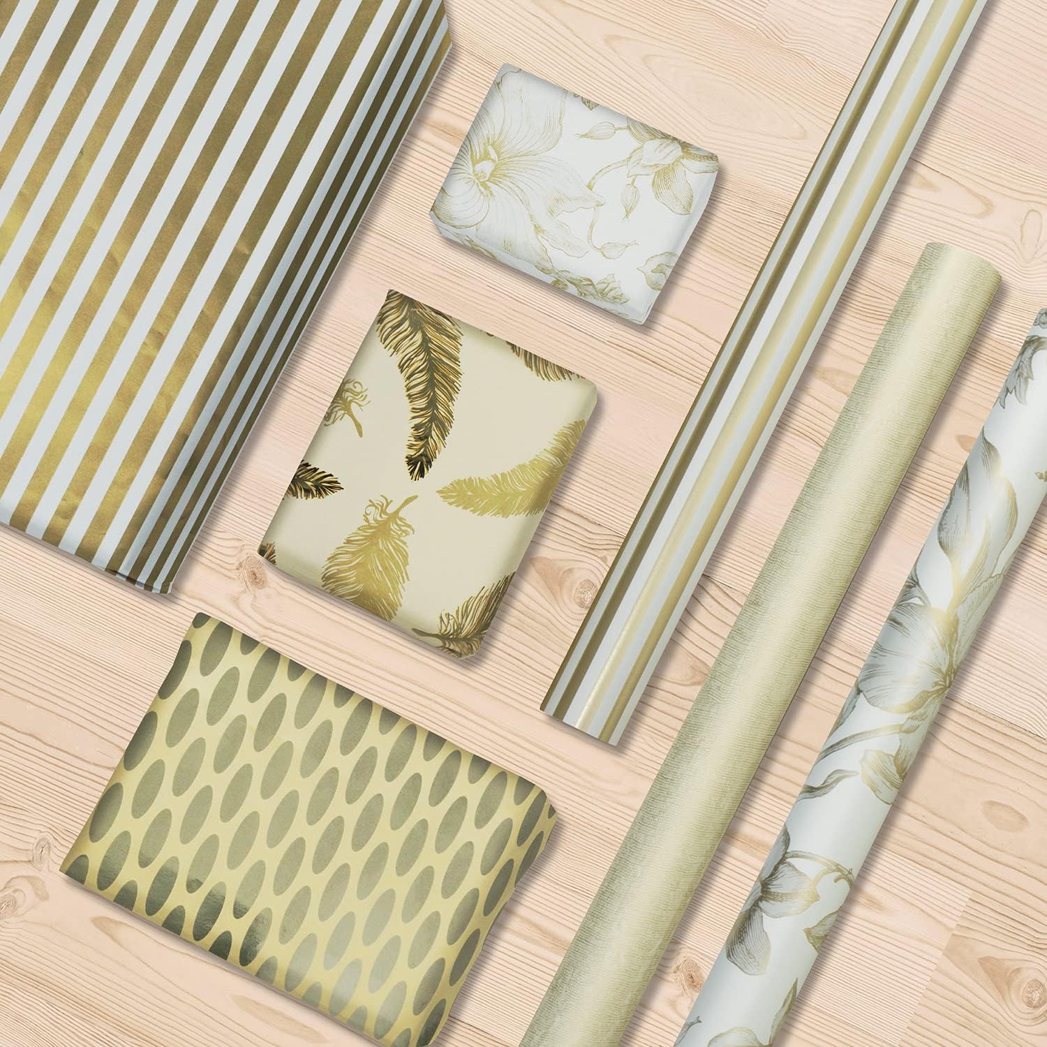 - Die gold-weissen Muster auf einem glänzenden Papier von grosser Reinheit verleihen Ihren Geschenken eine festliche Atmosphäre und ein wahrhaft qualitatives Erscheinungsbild. Passen Sie sie dem Anlass (gelegentliche Einladungen, Hochzeit, Geburtstag…)