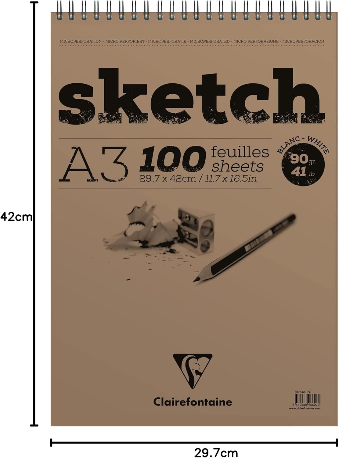 Clairefontaine 96602C Skizzenblock Sketch (100 Blatt, DIN A3, 29,7 x 42 cm, Spiral, mikroperforiert,