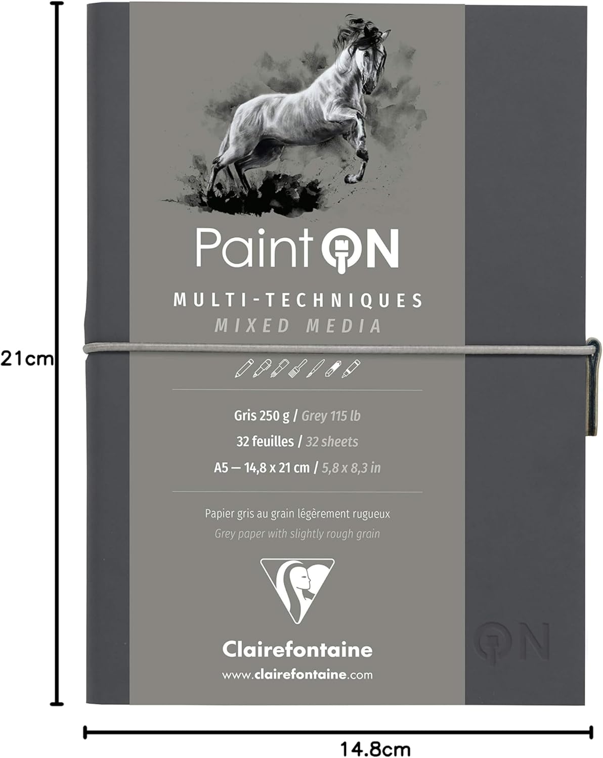 Clairefontaine 975184C Skizzenheft mit Fadenbindung Paint'On (32 Blatt, 250g) 1 Stück grau grau ohne