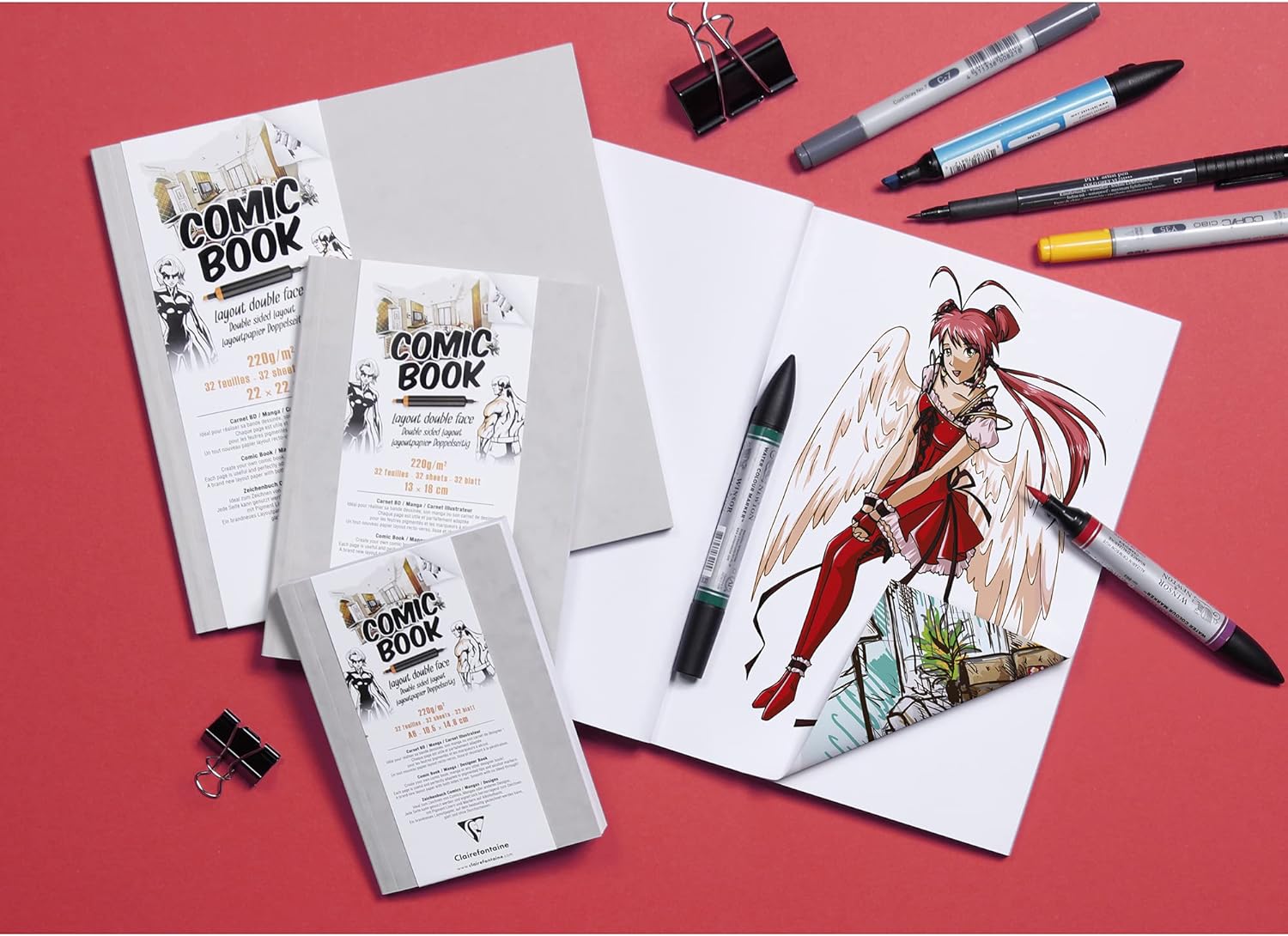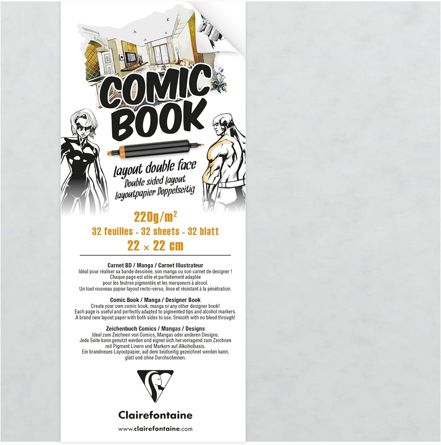 Clairefontaine 975198C Zeichenbuch mit doppelseitigem Layoutpapier, 220g, 22 x 22cm, ideal für Comic
