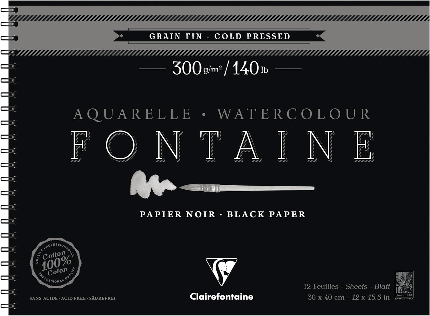 - Malblock Fontaine von Clairefontaine mit Spiralbindung. Der Block entält 12 Blatt mit feiner Körnung 300g. Format: 24 x 30 cm. Farbe: Schwarz