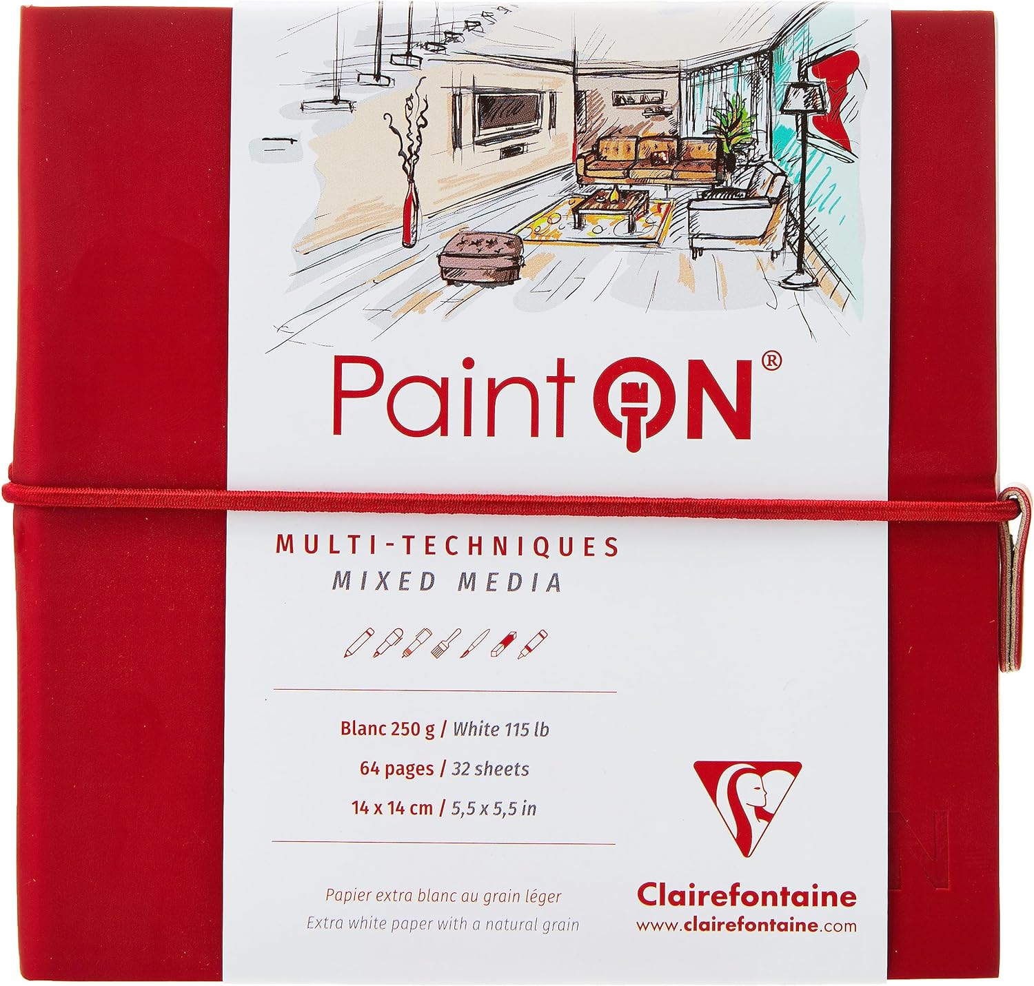 Clairefontaine 975430C - Skizzenbuch mit Fadenbindung, 64 Blatt Zeichenpapier PaintOn weiss, 14x14 c