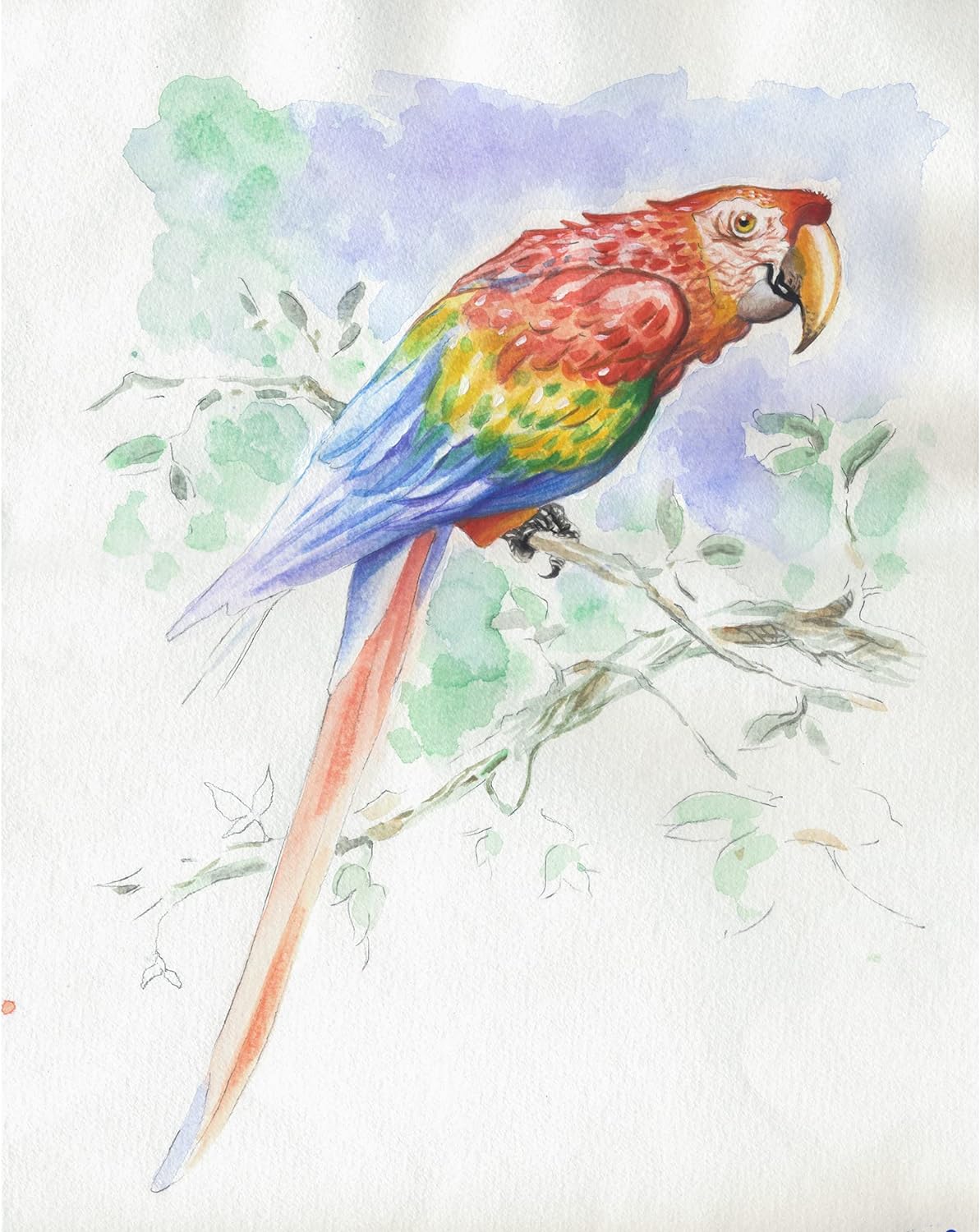 - Ein vorgezeichneter Block für Aquarellmalerei (leichte Malerei mit wasserverdünnten transparenten Farben)