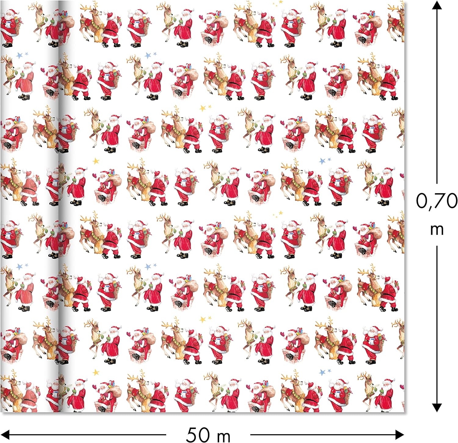 - Rolle Geschenkpapier Alliance von Clairefontaine in Format 50m x 70cm. Das Papier ist 60g. Sie bekommen 1 Rolle. Traditionelles Design mit Santa