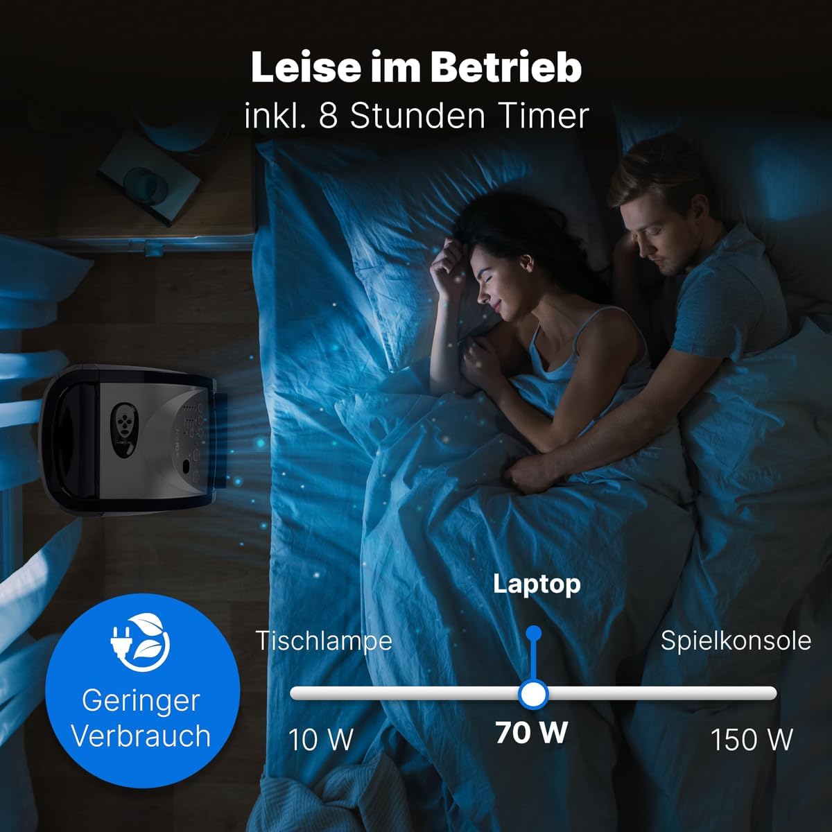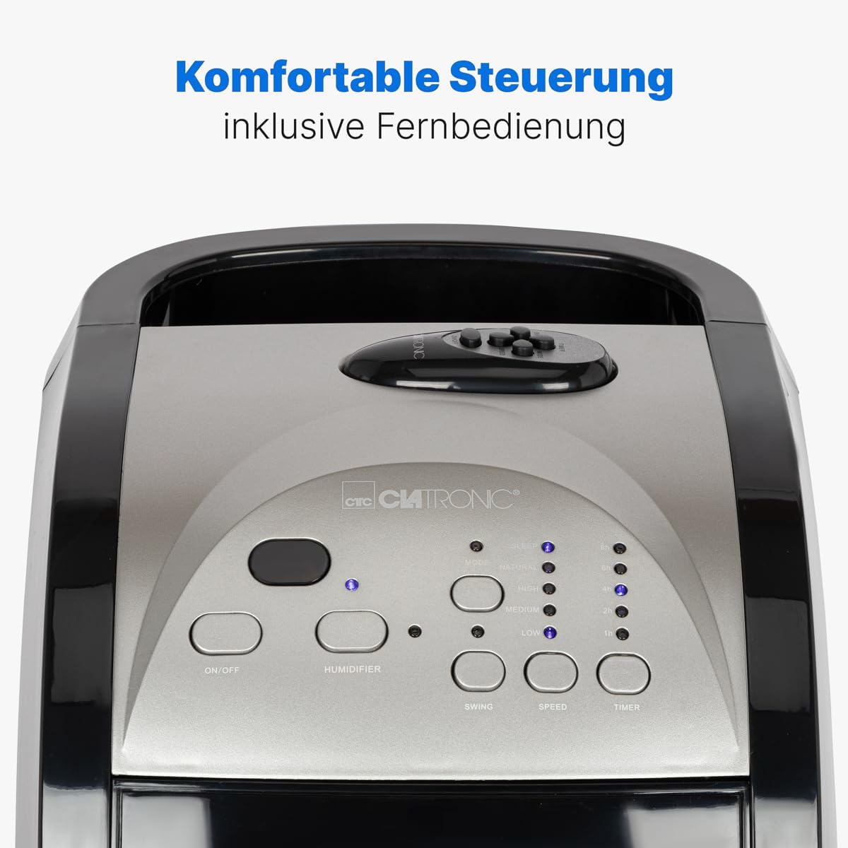 - 8 Stunden Timer, 2 Elektro-Windmodus-Funktionen, 3 Gebläsestufen, Swing-Funktion (oszillierend)