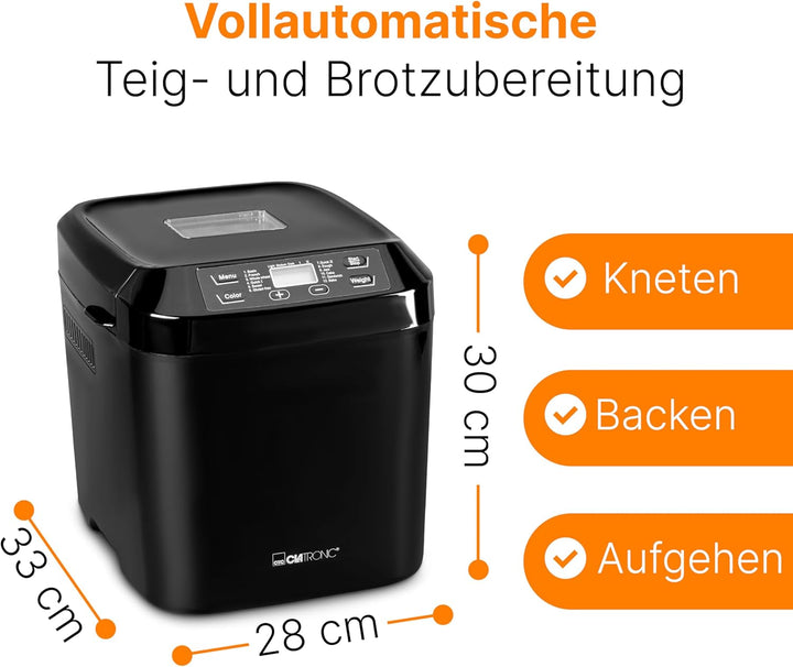 - Vollautomatische Teig- und Brotzubereitung (Kneten, Aufgehen, Backen)