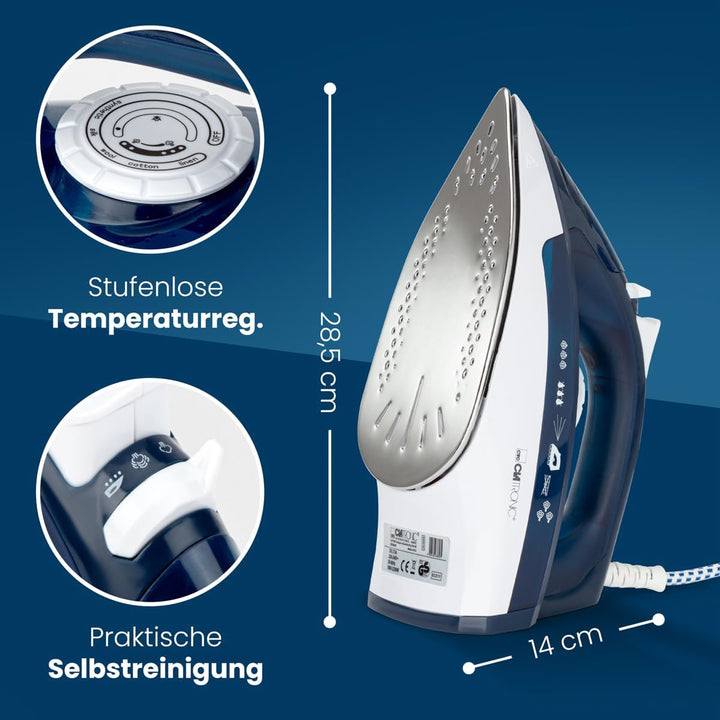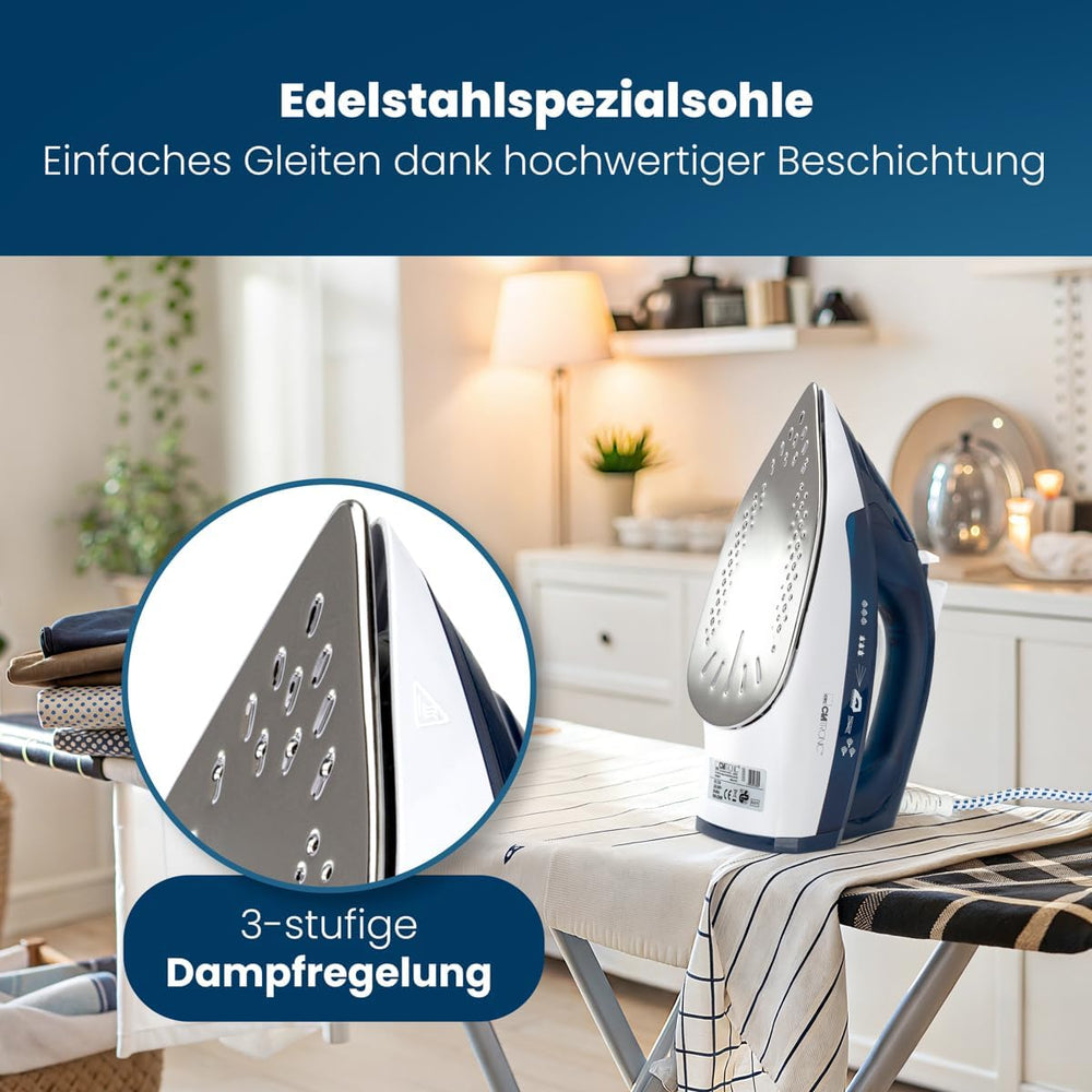 - HOCHWERTIG — Die Edelstahlspezialsohle von Clatronic erhitzt schnell und gewährleistet eine ideale Gleitfähigkeit auf verschiedenen Stoffen wie beispielsweise Baumwolle, Leinen, Synthetik oder auch Wolle.
