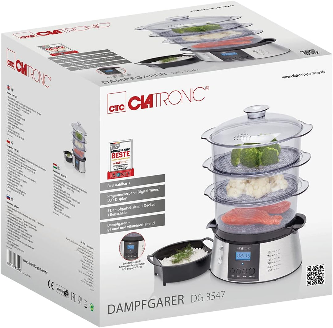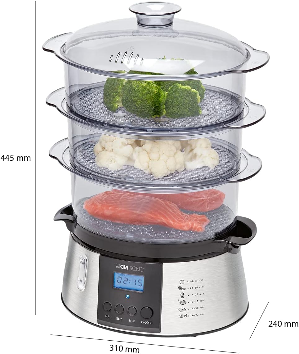 - Zusätzlich verfügt der elektrische Garer über einen programmierbaren Digital-Timer inkl. LCD-Display