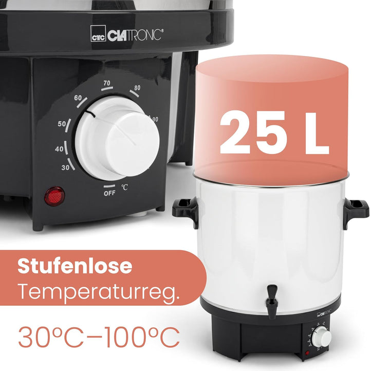 - Geniessen Sie Suppen, Glühwein, Kaffee, Tee, Punsch oder andere Getränke mit dem 25 Liter grossen Einkochtopf