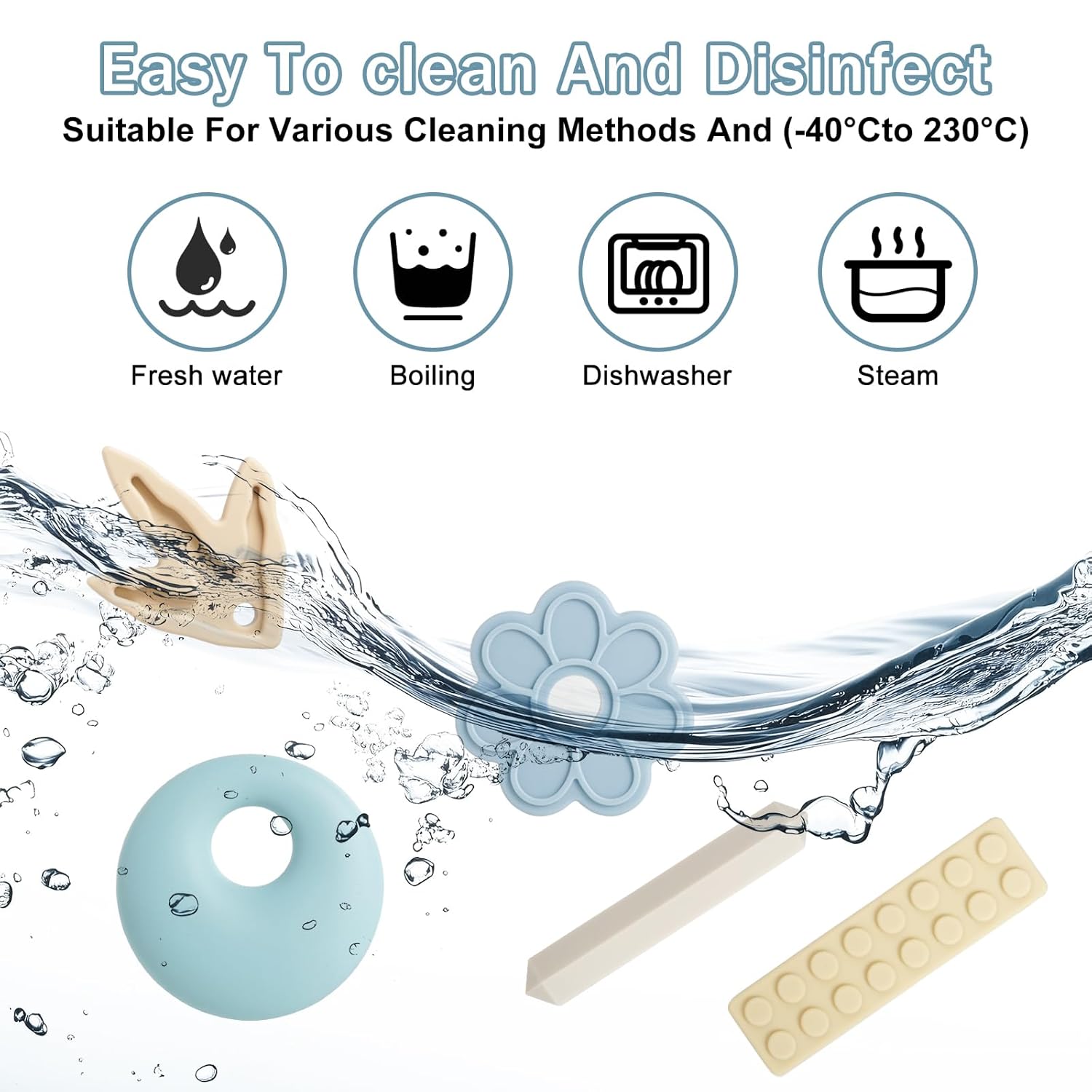 - Leicht zu reinigen - Beissringketten aus Ziegeln sind leicht zu reinigen und hochtemperaturbeständig. Sie können die oralen sensorischen Kauspielzeuge in der Spülmaschine oder per Handwäsche reinigen oder mit Wasser abspülen, Anschliessend