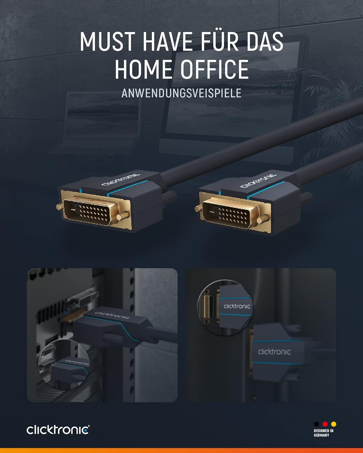 • Das DVI-D auf DVI-D-Kabel überträgt Auflösungen bis Full HD mit hoher Farbtiefe und einer super flüssigen Bildwiederholungsrate