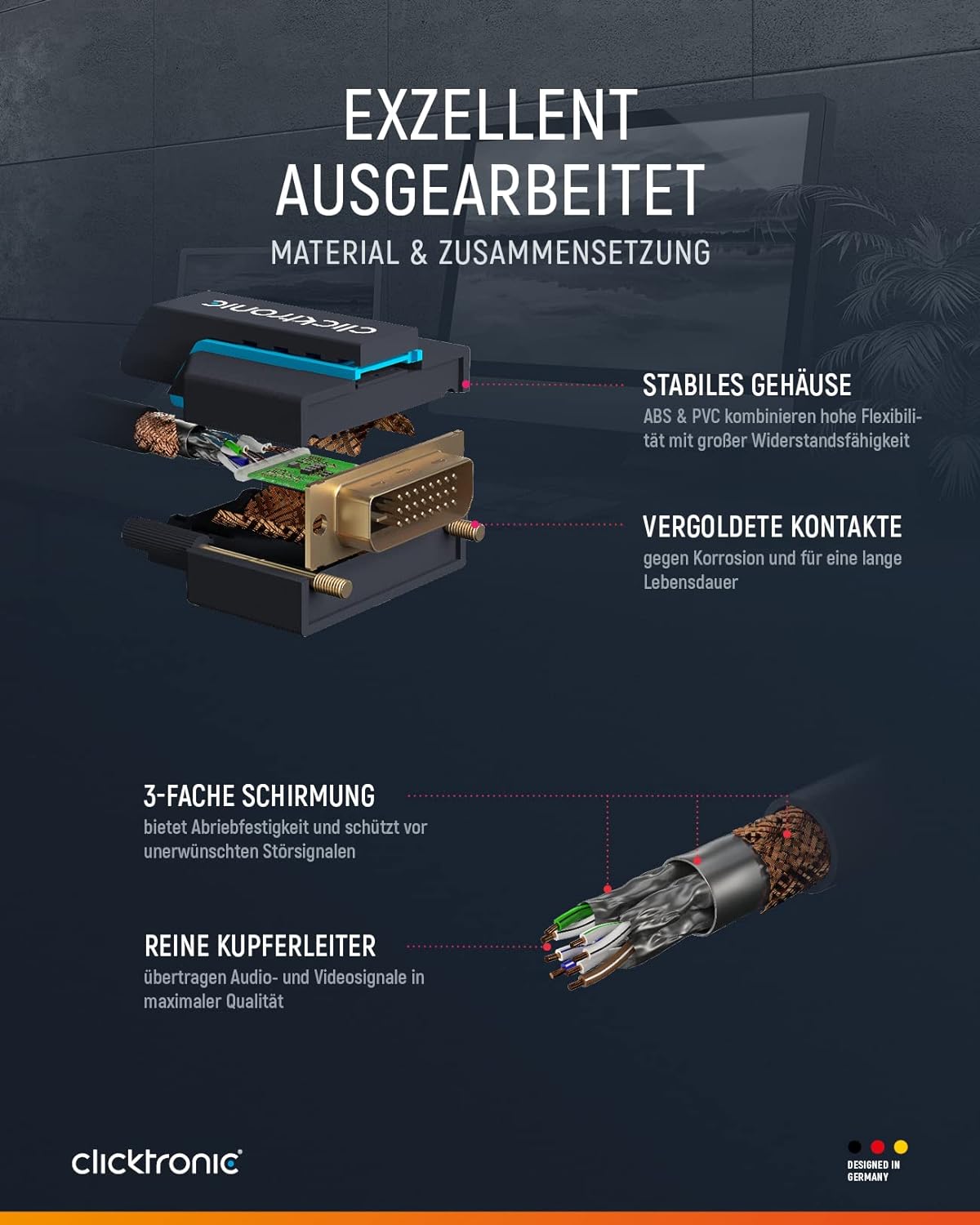 • Reine Materialien, präzise Verarbeitung und moderne Technik ermöglichen eine störungsfreie Video Übertragung zwischen zwei Geräten
