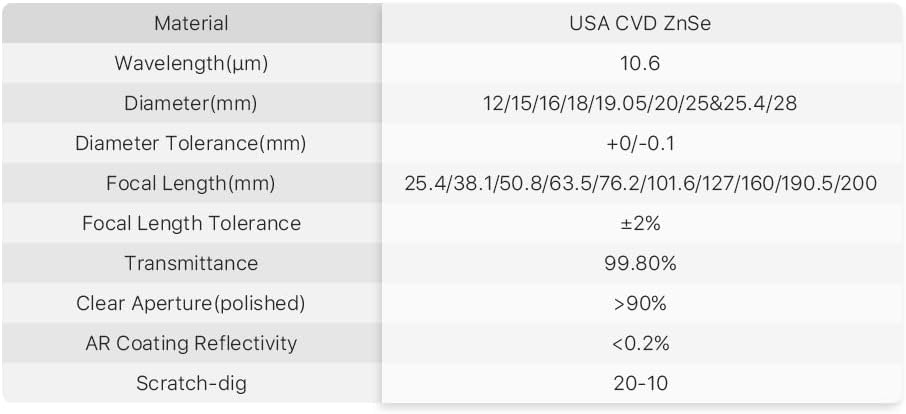 • Cloudray CO2 Laser Focus Lens CO2 linsen CO2 Znse Fokuslinse Hervorragender Beschichtungsprozess: Doppelseitige feste Beschichtung. Abwischen Widerstand. Lange Lebensdauer