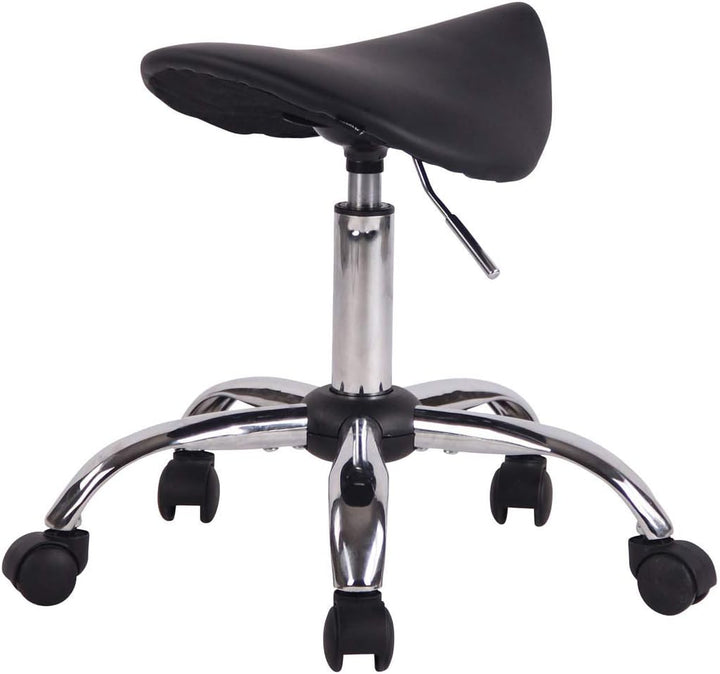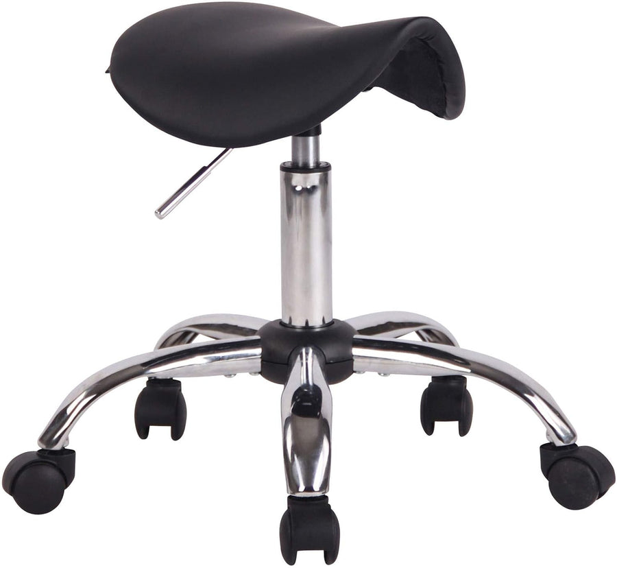 - Die Sitzfläche ist in der Höhe individuell anpassbar und der Hocker ist drehbar. Zudem ist der Sattelsitz angenehm gepolstert und der Kunstlederbezug ist besonders pflegeleicht.