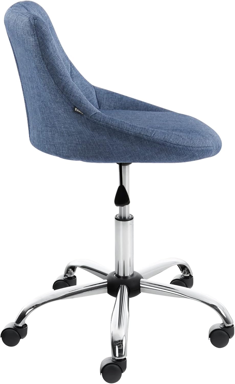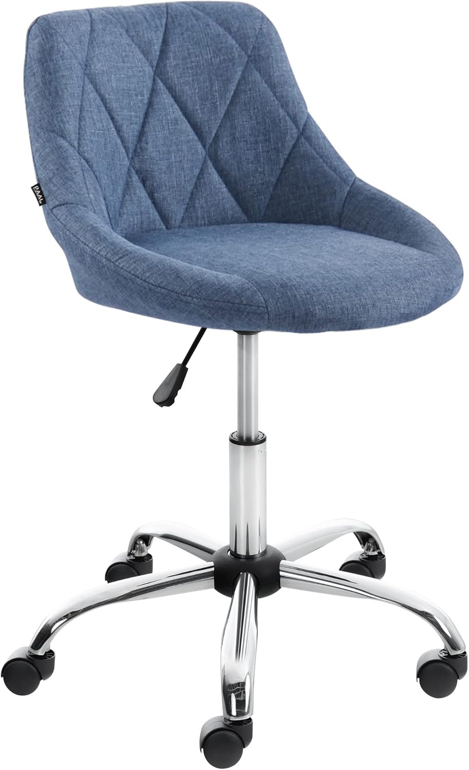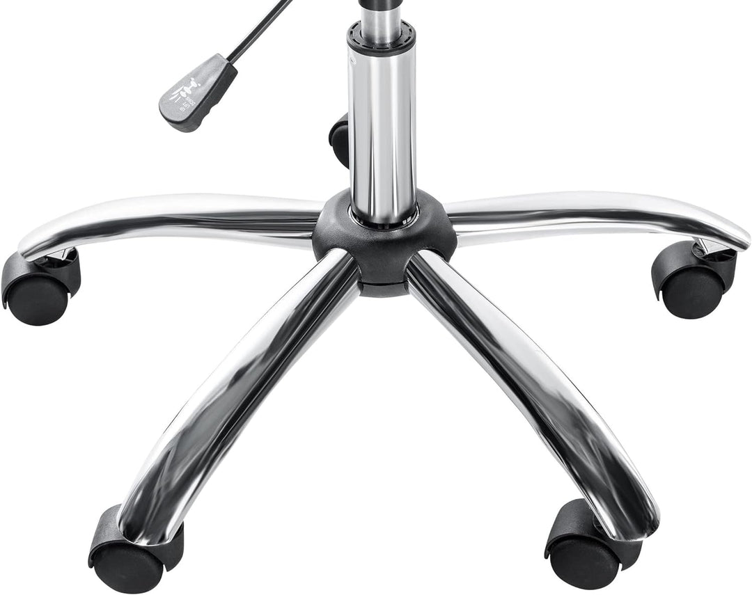 - Der Drehstuhl ist mittels Gaslift höhenverstellbar sowie um 360° drehbar. Er steht standsicher auf fünf Leichtlaufrollen und einem Gestell aus Metall in Chromoptik.