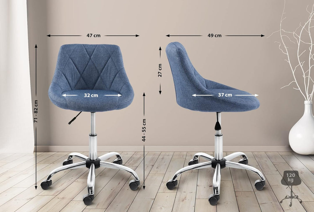 - Ca. Masse: Gesamthöhe: 71 - 82 cm I Gesamtbreite: 47 cm I Gesamttiefe: 49 cm I Sitzfläche: 32x37 cm I Rückenlehne: 27 cm I Sitzhöhe: 44 - 55 cm I Maximale Belastbarkeit: 120 Kg I Gewicht: 6 kg