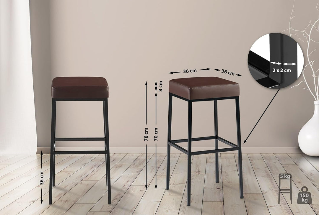 - Dieser klassische Barhocker besticht durch einen bequemen und hochwertig gepolsterten Sitz aus formstabilem Kaltschaum. Der mit Kunstleder bezogene Sitz ist sehr pflegeleicht. Sie können die Sitzfläche mühelos mit einem feuchten Tuch säubern.
