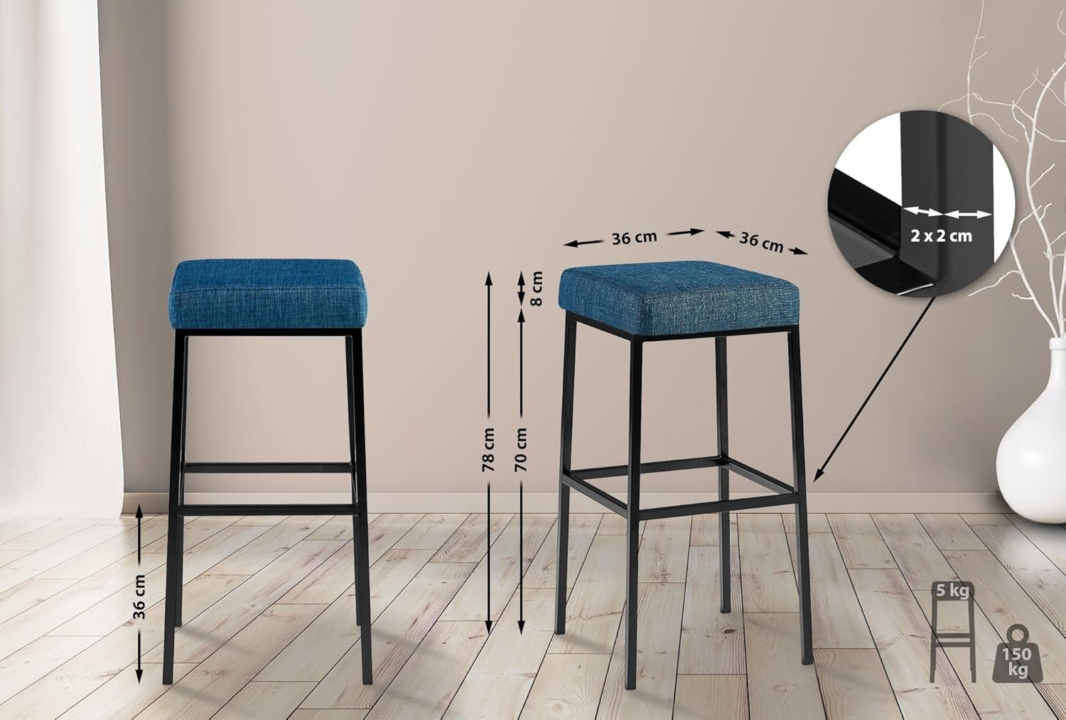 - Ca. Produktabmessungen dieses Modells: Gesamthöhe: 80 cm | Gesamtbreite: 37 cm | Gesamttiefe: 37 cm | Sitzhöhe: 80 cm | Gewicht: 6 kg