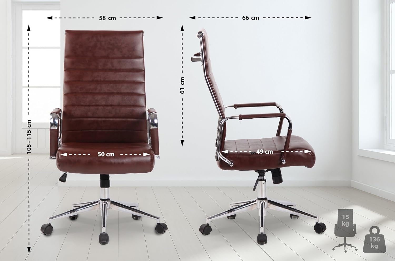 - MATERIAL: Weiche Polsterung mit strapazierfähigem Kunstleder-Bezug I Bürostuhl steht auf stabilem Metall-Gestell in Chrom-Optik oder Schwarz I mit fünf drehbaren Leichtlaufrollen ausgestattet