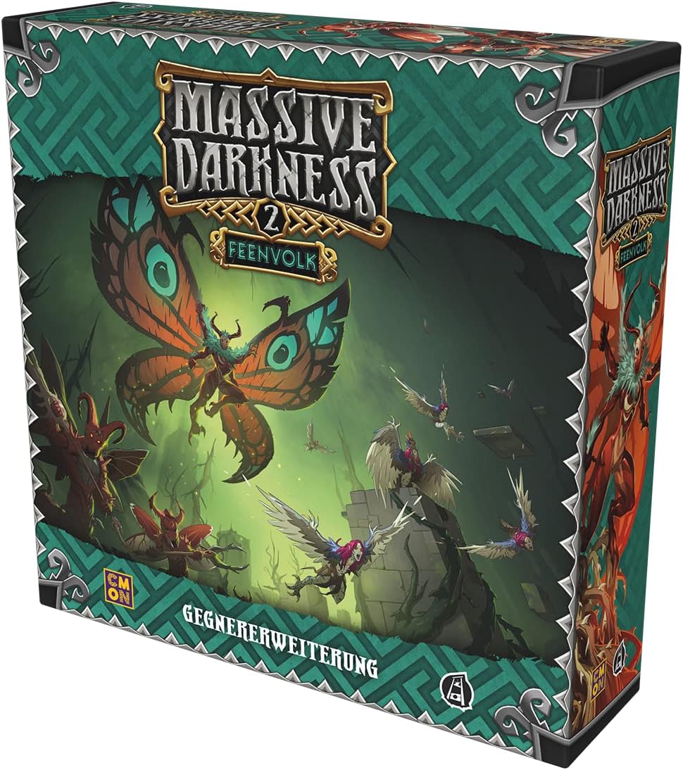 - Die Erweiterung Feenvolk ergänzt dein Grundspiel Massive Darkness 2: Höllenschlund um 2 Horden Harpyien und Finstere Feen mit Anführern und Schergen und das Wandernde Monster: Königin Caenedra